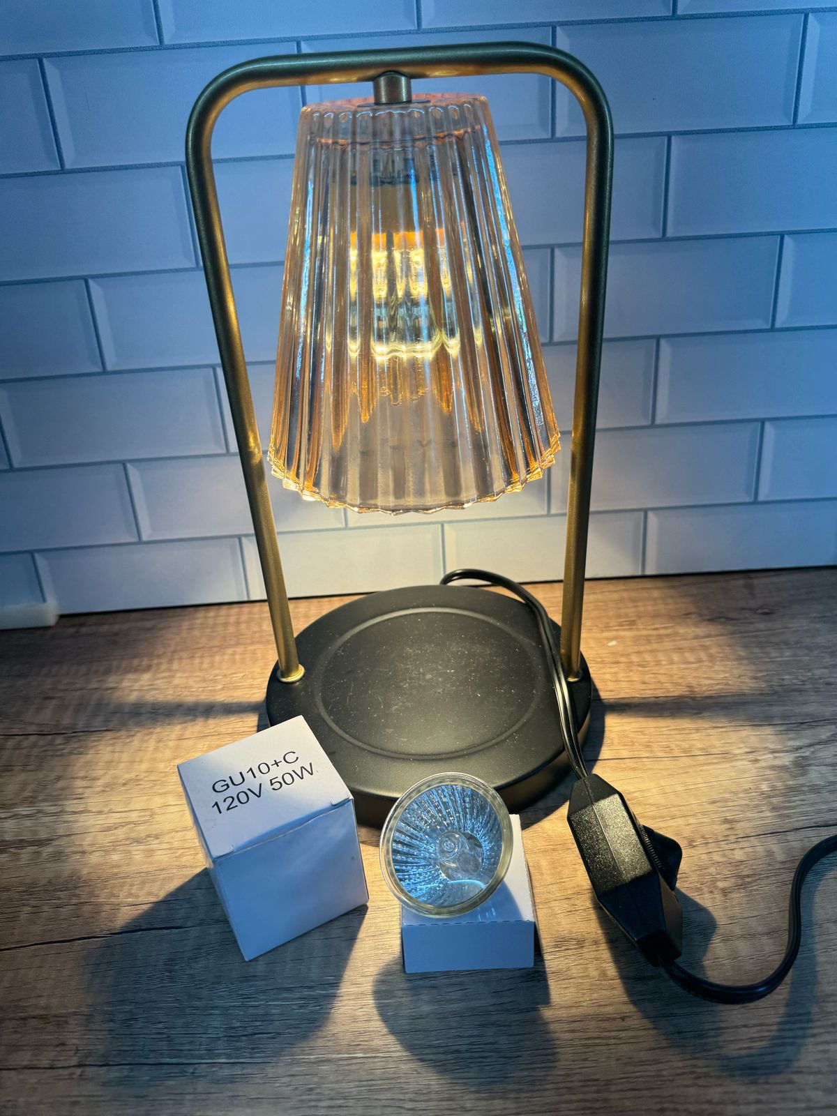 Mikasa Lámpara eléctrica de cristal ámbar para velas perfumadas, calen...