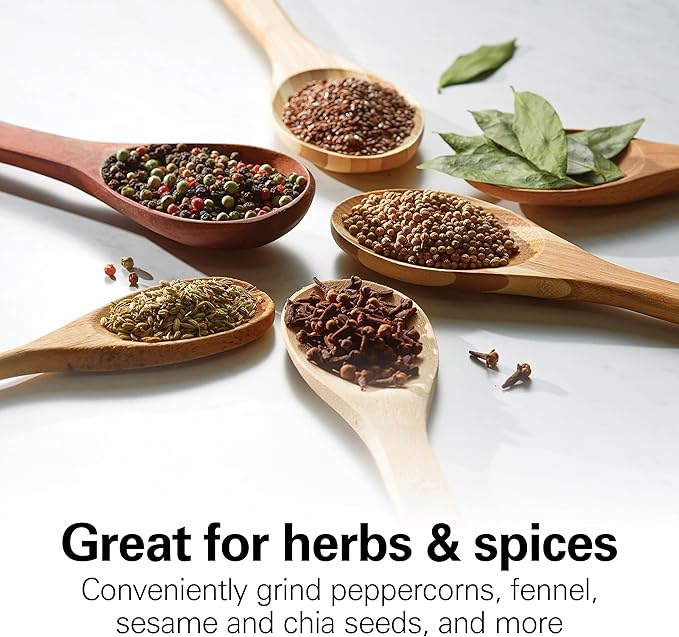 Molinillo de café eléctrico Hamilton Beach Fresh Grind para granos, especias y más, cuchillas de acero inoxidable, cámara extraíble, rinde hasta 12 tazas, color blanco