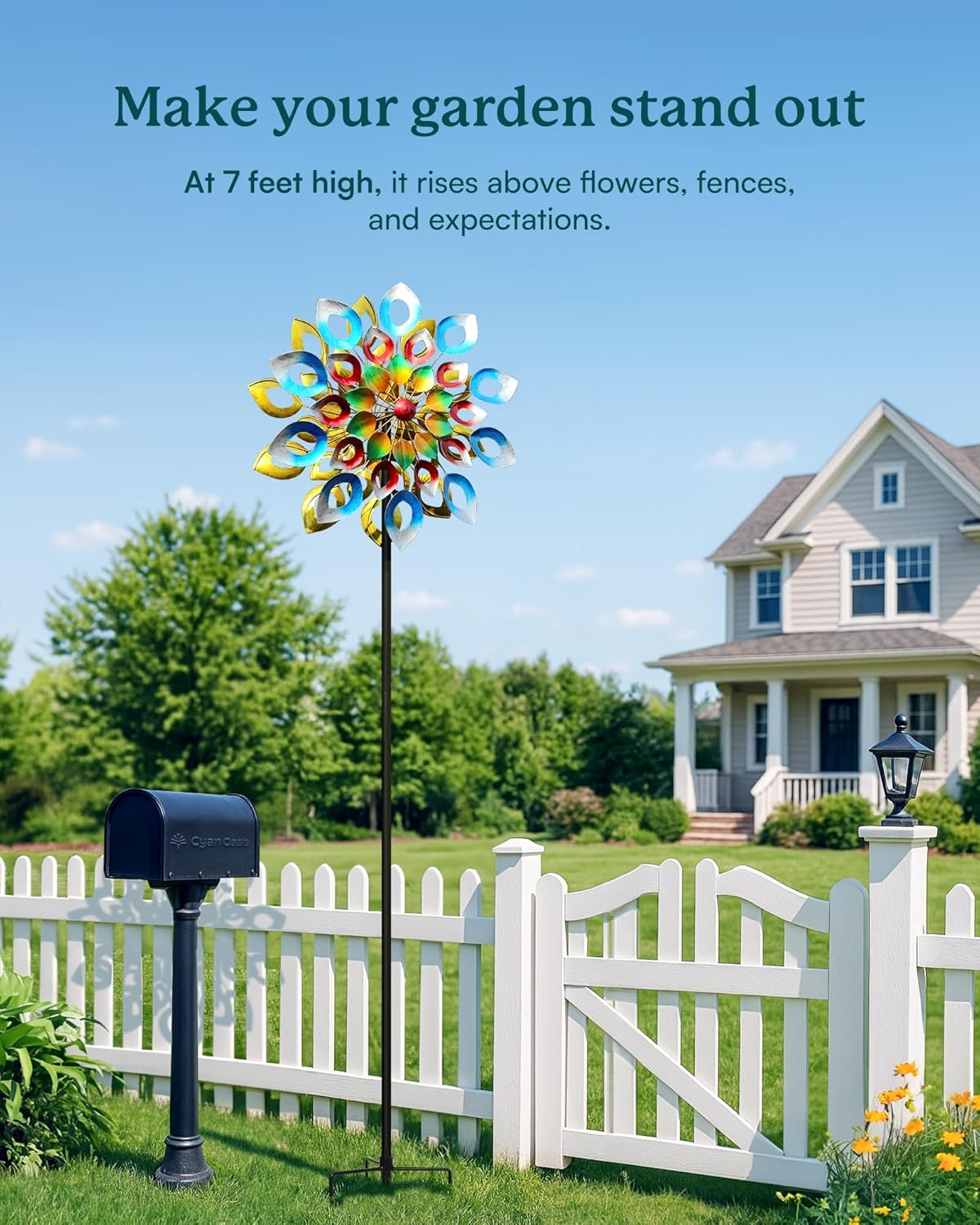 Molinillos de viento para jardín con estaca – Grandes molinillos de viento de metal para exteriores, decoración de jardín de césped (24 pulgadas de ancho x 84 pulgadas de alto)