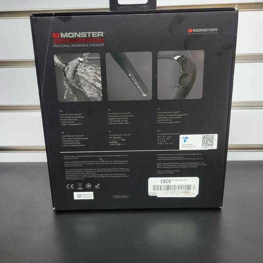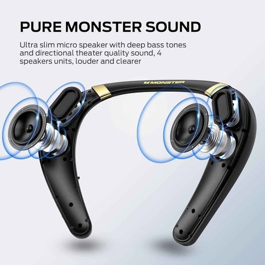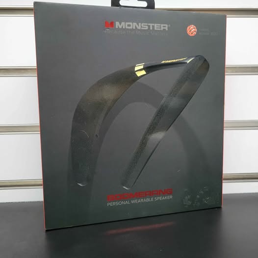 Monster Boomerang - Altavoz Bluetooth con banda para el cuello, inalámbrico con 12 horas de reproducción, sonido estéreo 3D, ropa de sonido portátil, IPX7 impermeable, para deportes en casa al aire.
