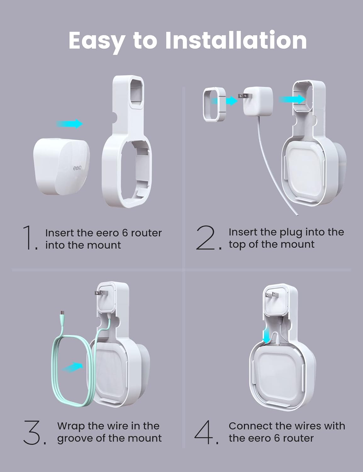 Soporte de montaje en pared DG-Direct solo para sistema Wi-Fi de malla de enrutador eero 6, sin cables desordenados, soporte para eero 6 Extender Ahorro de espacio blanco 3Pcs