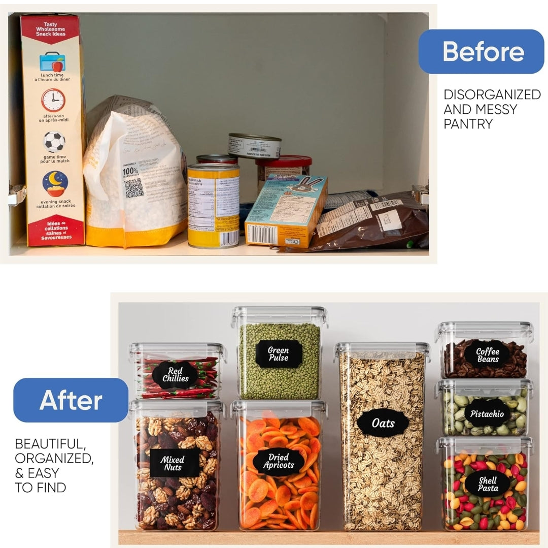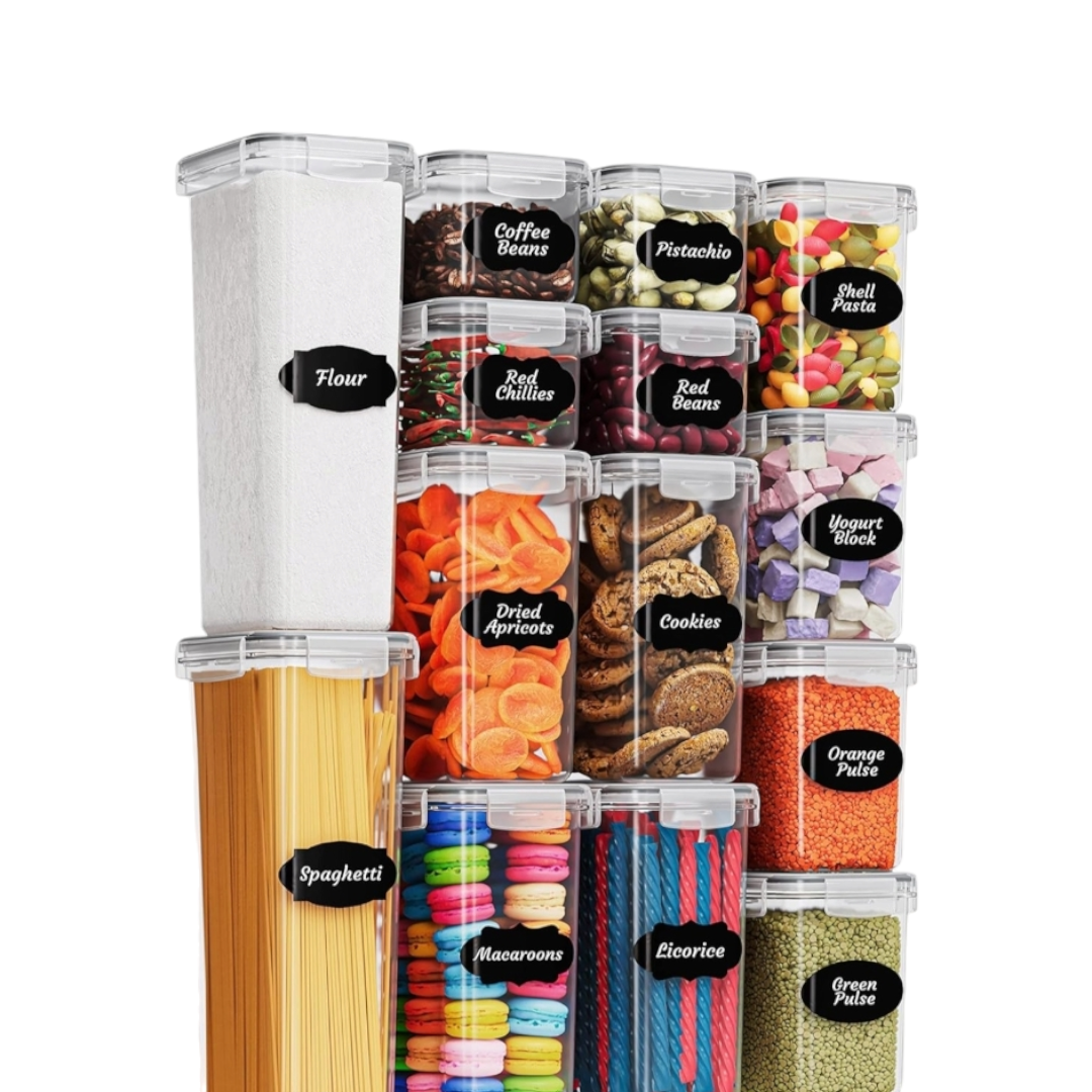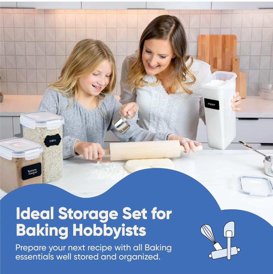 Organizadores y almacenamiento de despensa de cocina, juego de recipientes herméticos para almacenamiento de alimentos, 14 recipientes de plástico sin BPA para alimentos secos para organización.