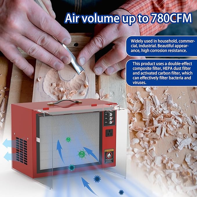 OUKEETO Sistema de filtración de admisión portátil – colectores de polvo de mesa (580-780 CFM) para carpintería, filtro de aire móvil con ventilador de vórtice fuerte, sistemas de recogida de polvo de mesa para talleres de cochera.