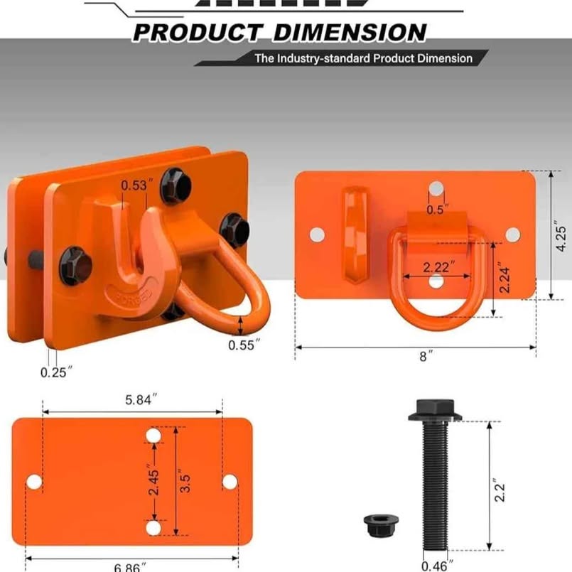 Paquete de 2 ganchos para cubo de tractor con anillo de amarre, acero forjado de grado 70, gancho de agarre con placa de respaldo, funciona bien para cubo de tractor, RV, UTV, camión, máximo.