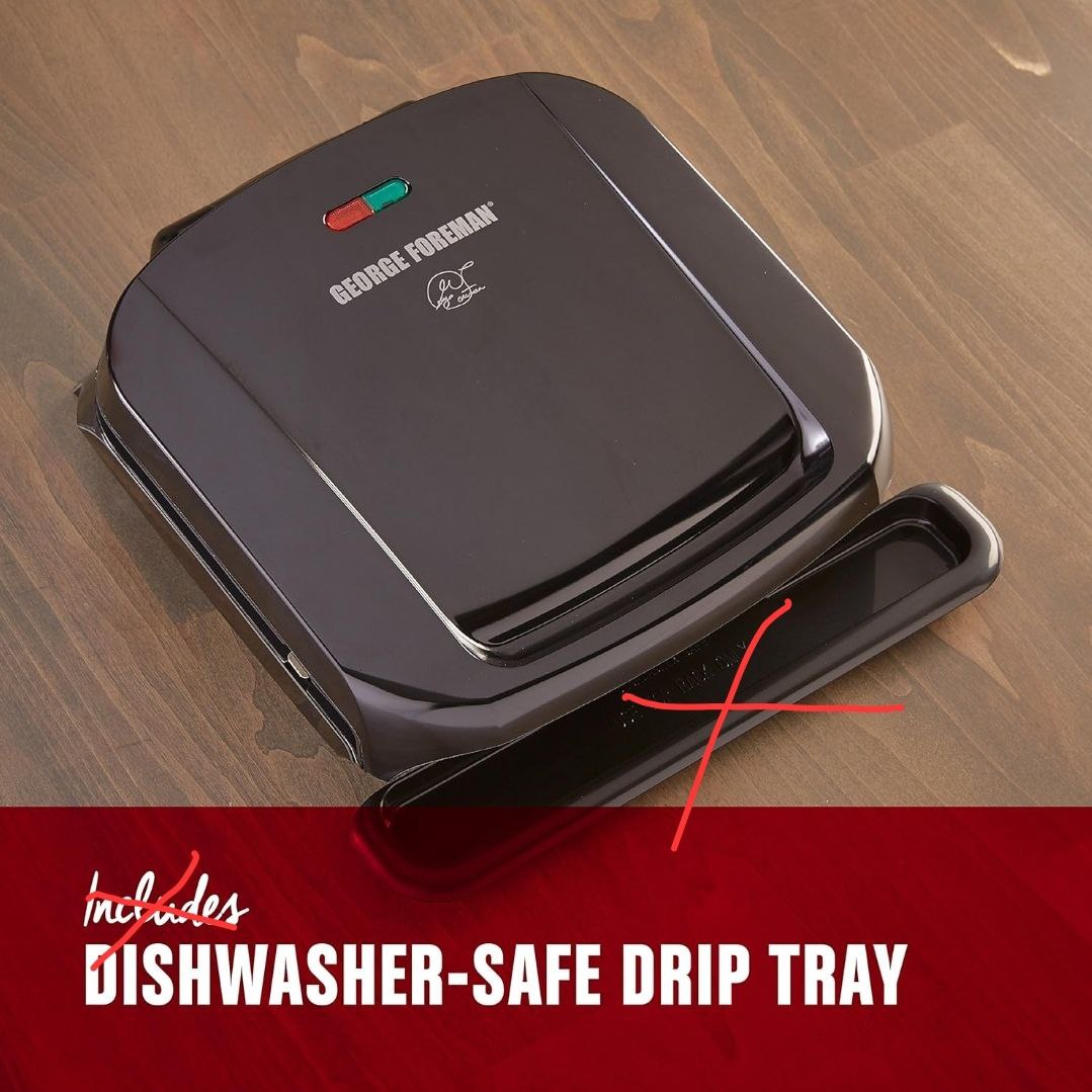 Parrilla con placa desmontable para 4 porciones George Foreman GRP1060B, color negro, Negro