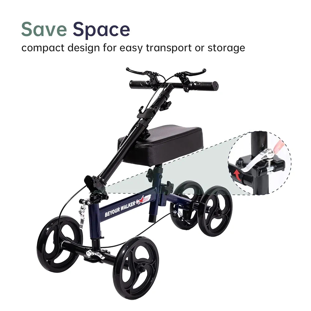 Patinete beyour Walker de rodilla con cesta Sistema de frenado dual para tobillo y pie lesionado negro
