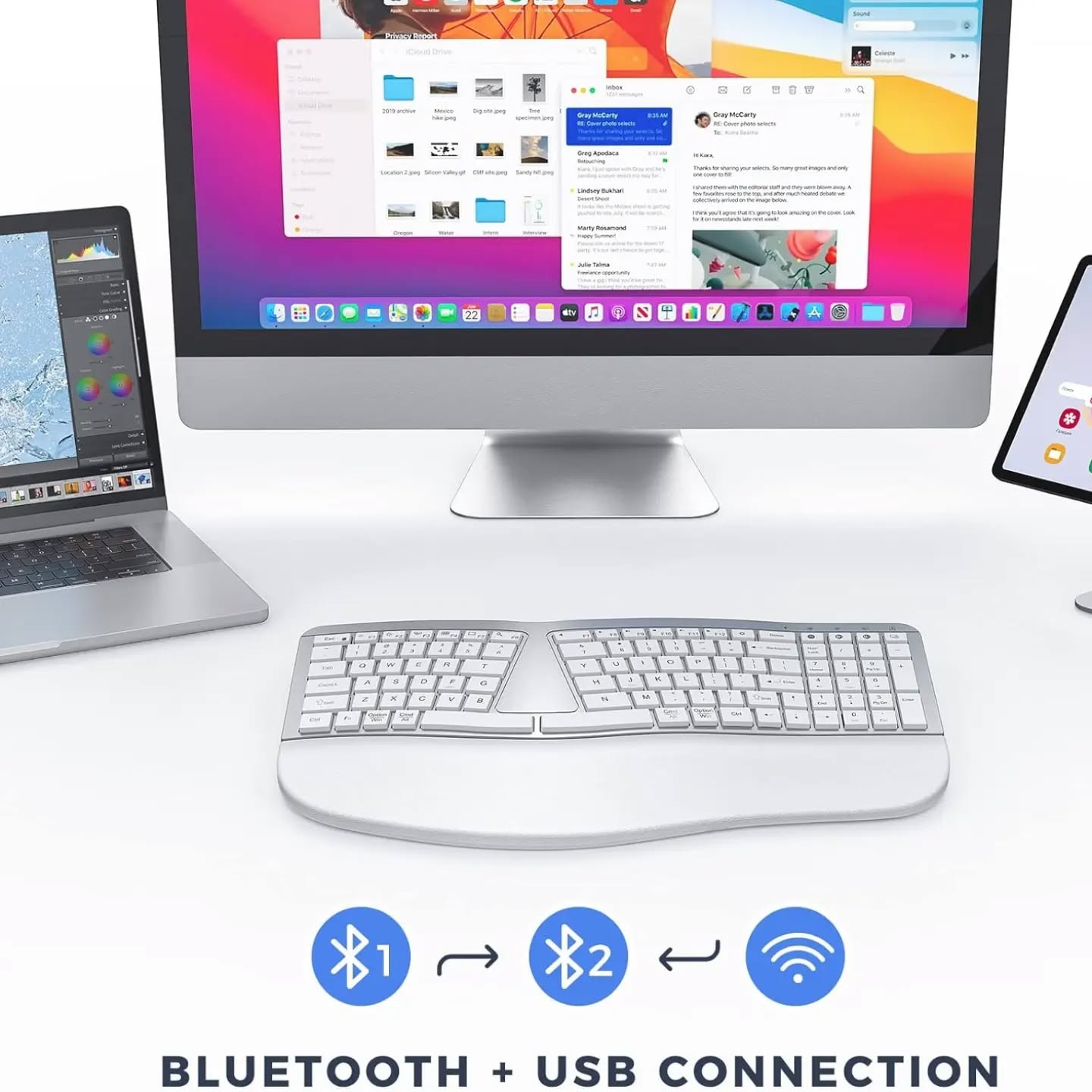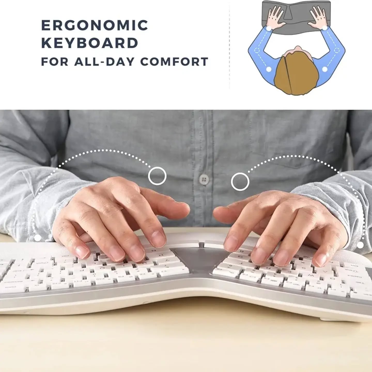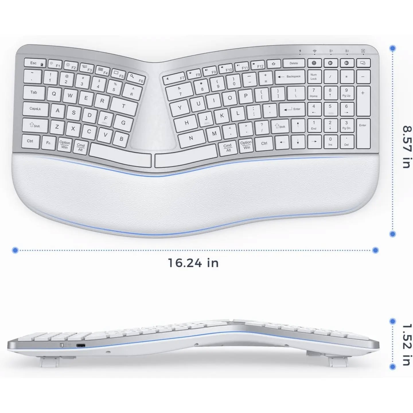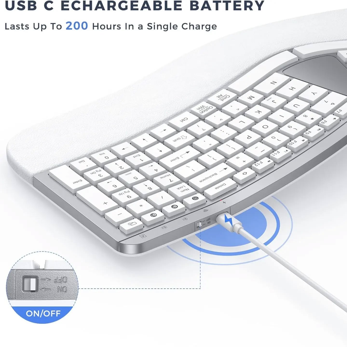 PEIOUS Teclado ergonómico, teclado Bluetooth, multidispositivo, recargable, con diseño de teclado dividido y reposamuñecas, teclado inalámbrico USB Ergo para Mac y Windows, portátil, computadora.