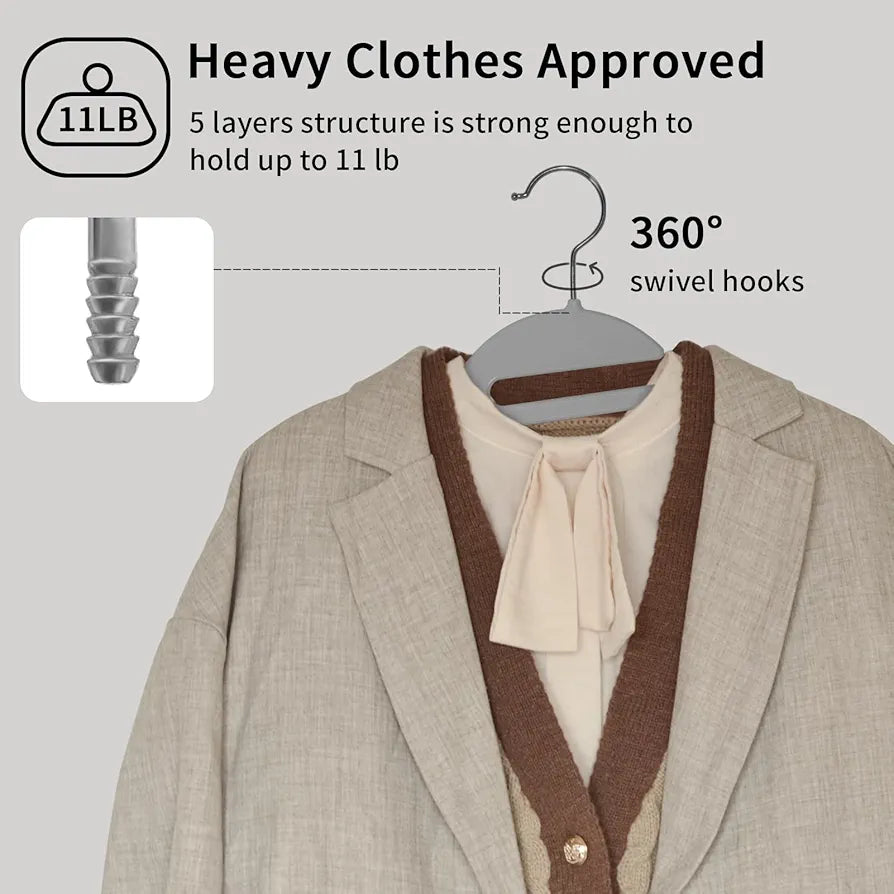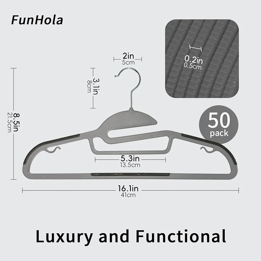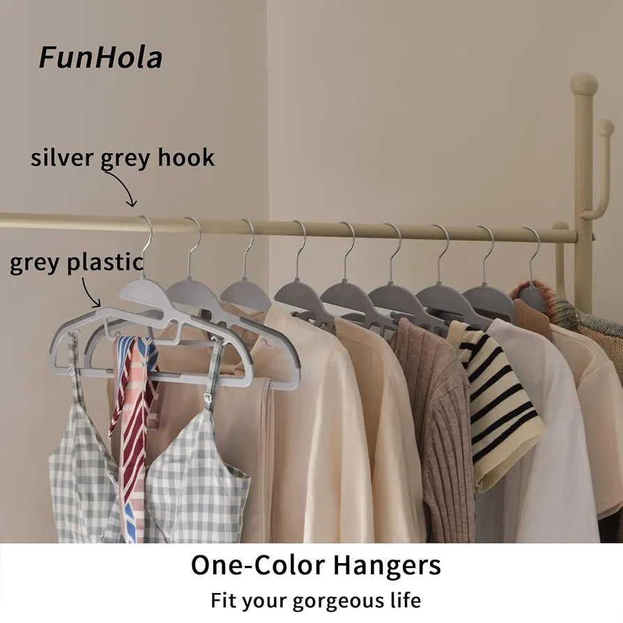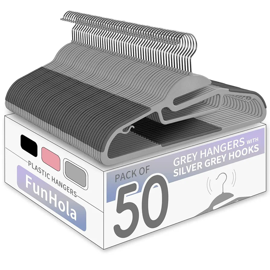 Perchas de plástico antideslizantes en forma de S de un solo color, paquete de 50 perchas de lujo, ahorro de espacio hasta un 40%, plástico gris con gancho giratorio de 360° gris plateado