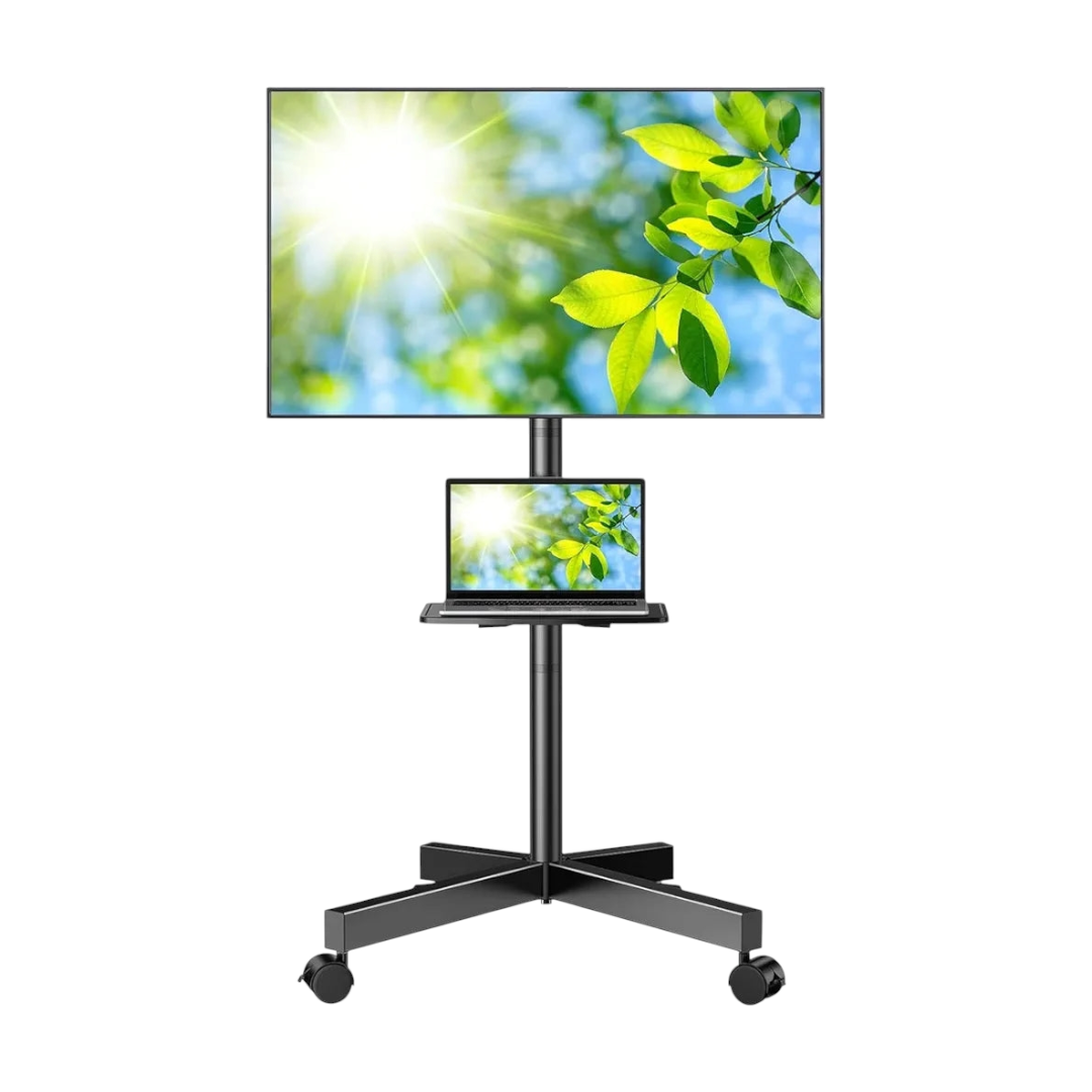 PERLESMITH Soporte de TV móvil para televisores de pantalla LCD LED plana/curvada de 23 a 60 pulgadas, carrito de TV inclinable con capacidad para hasta 88 libras, soporte portátil con estante.