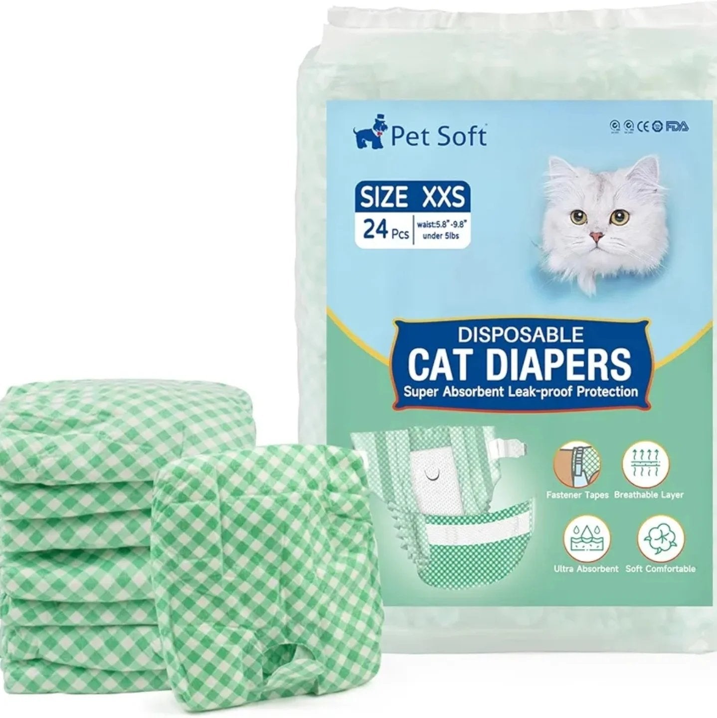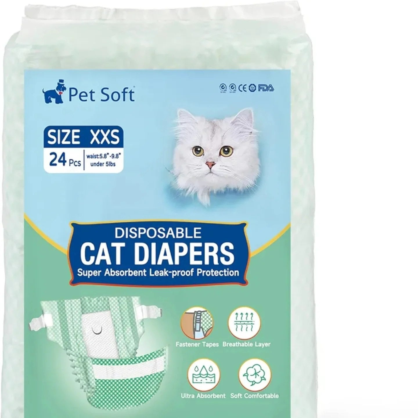 Pet Soft Pañales desechables para gatos – Pañales para perros en período de calor o incontinencia de orina, pañales para perras, pañales ultra absorbentes a prueba de fugas, pañales para cachorros, 24PCS, XXS.
