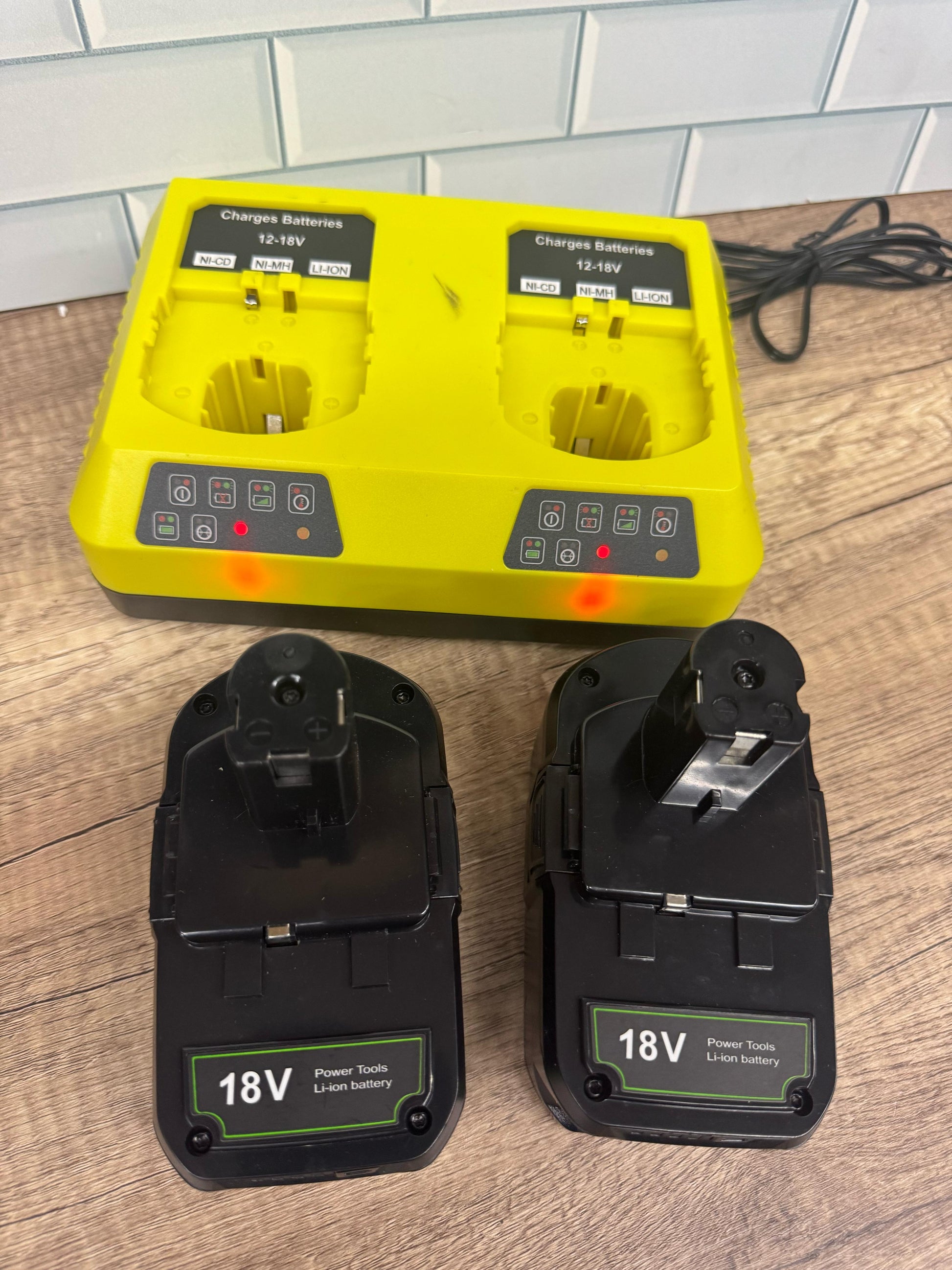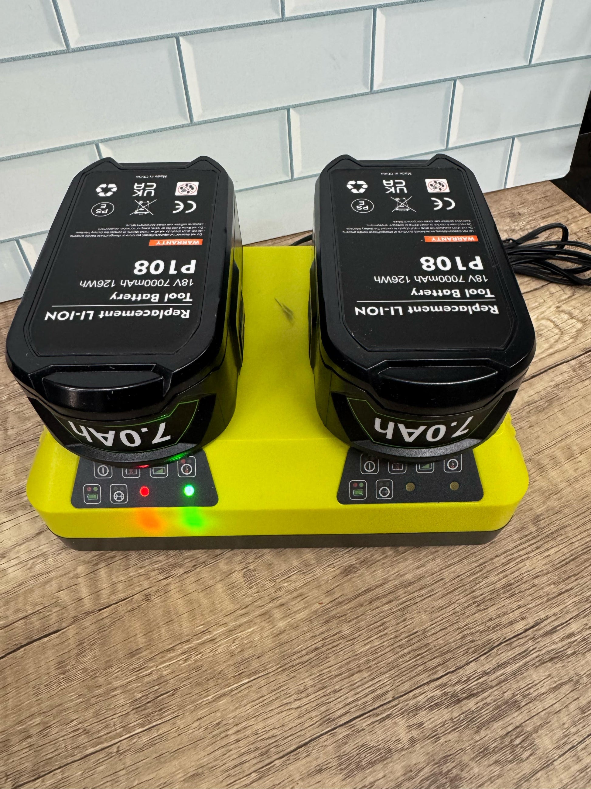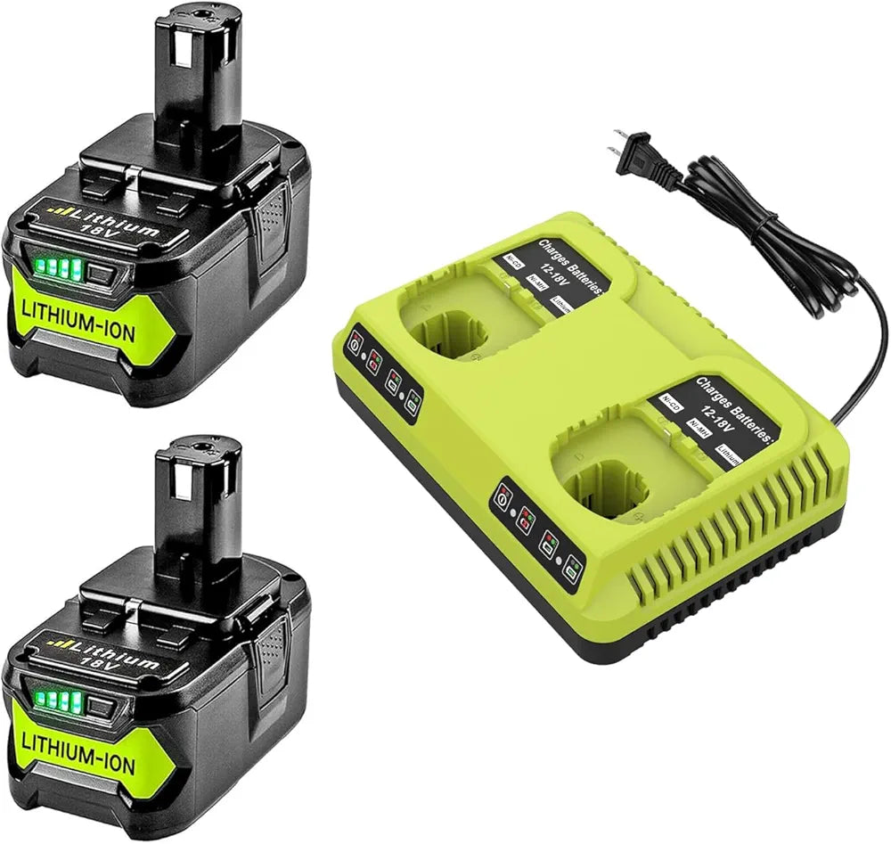 POWTREE - Paquete de 2 baterías P108 de 7.0Ah + cargador P117 de 2 puertos para batería Ryobi de 18 V y cargador P117, Cell9102 compatible con Ryobi de 18 V ONE + P108 P107 P104 P105 P102 P103.