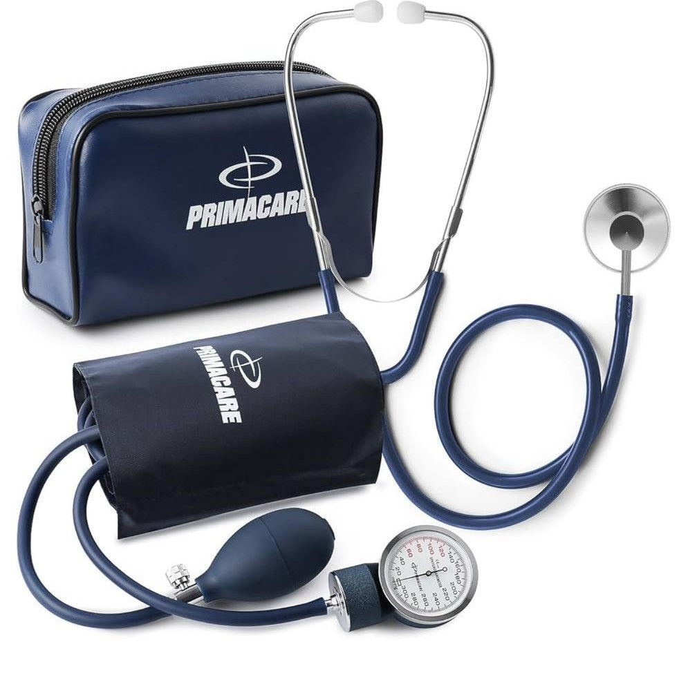 PrimaCare DS-9197-BL Professional Classic Series Kit de presión arterial manual para adultos, kit de presión arterial de emergencia con estetoscopio y funda de piel sintética portátil, puño de nailon.