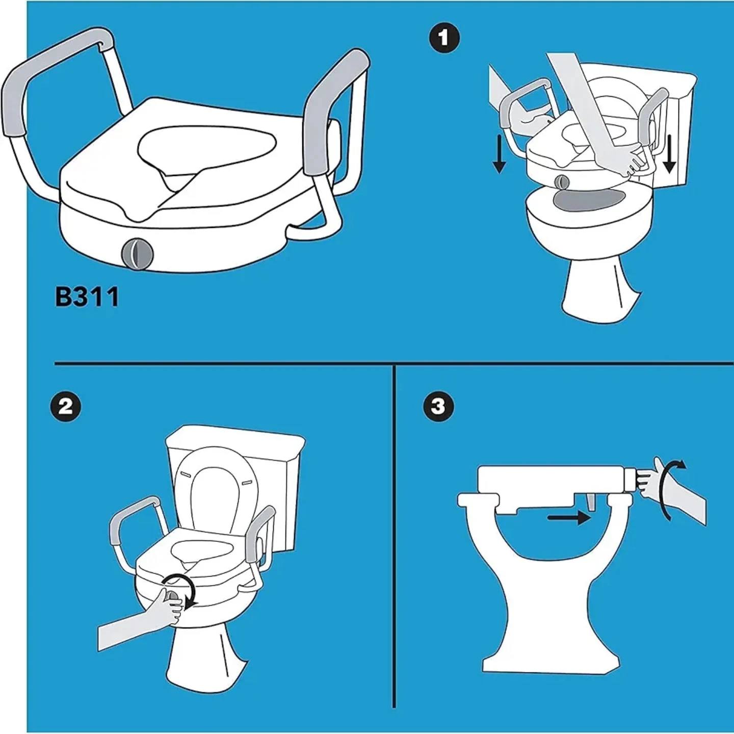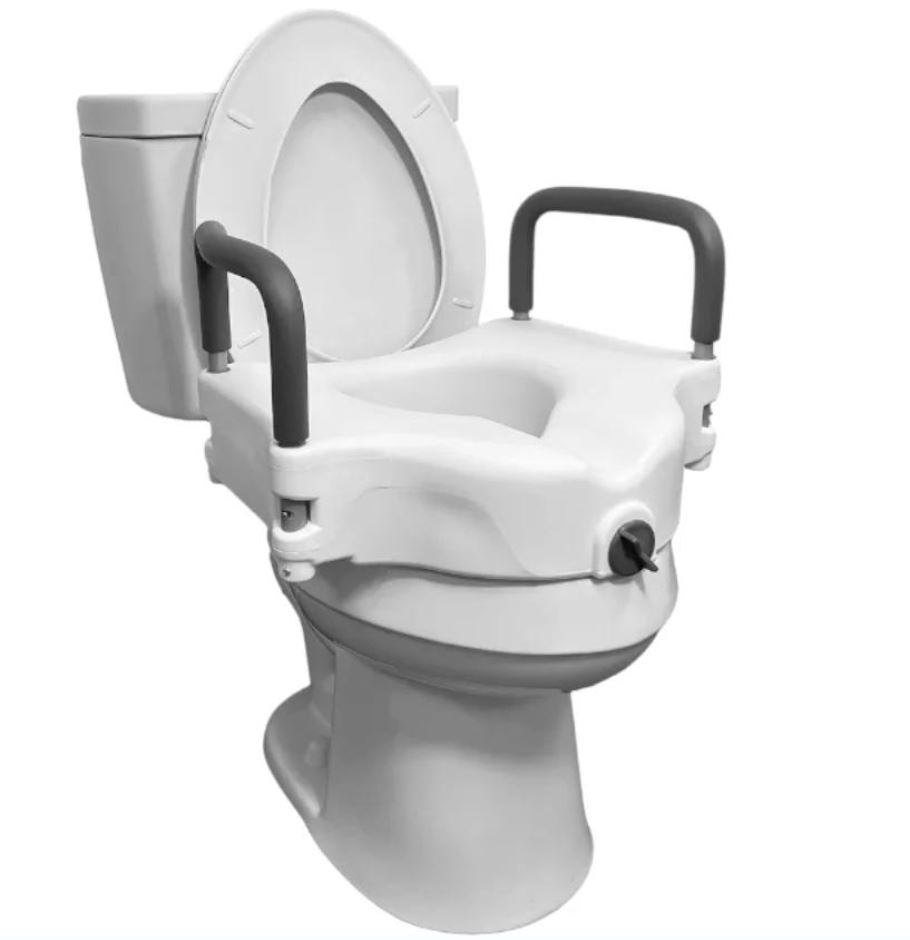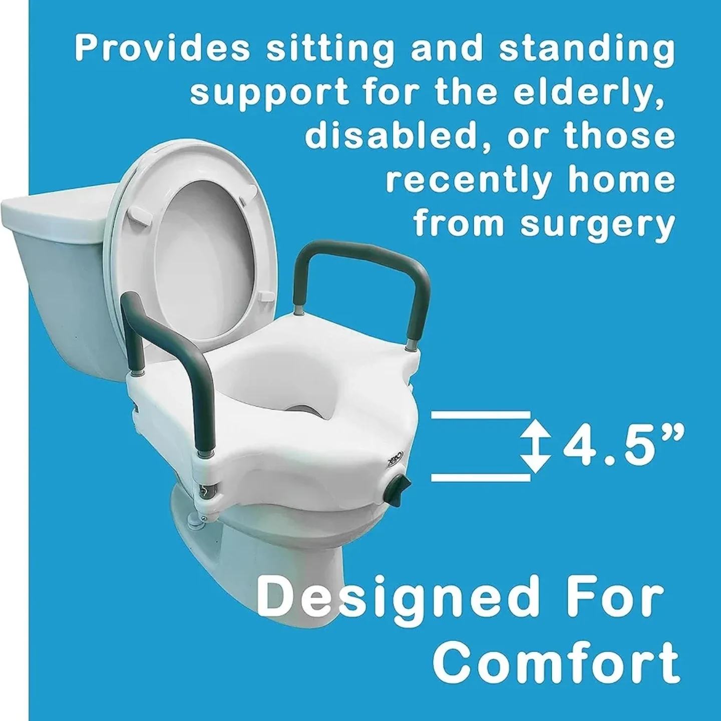 ProBasics E-Z Lock - Asiento de inodoro elevado con asas, asiento de inodoro de 4.5 pulgadas con brazos, se adapta a la mayoría de inodoros alargados y redondos.