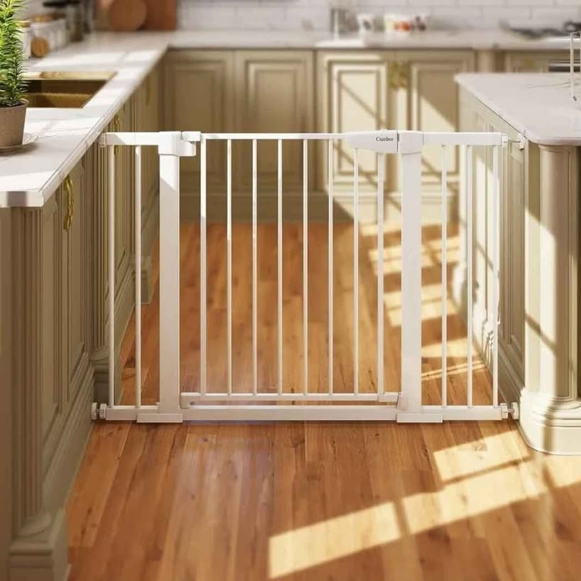 Puerta para escaleras para bebés Cumbor de 29,7 a 43 pulgadas de ancho x 30 pulgadas de alto, ganadora del premio Mom's Choice Awards, puerta para perros con cierre automático para la casa, puertas para mascotas con montaje a presión de fácil instalación para puertas, puerta de seguridad ancha y fácil de atravesar para perros, color blanco.