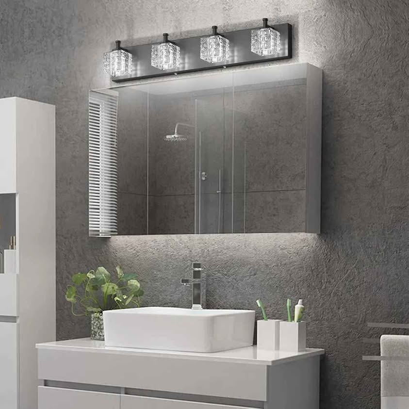 Lámpara Ralbay de tocador de cristal – 4 LED modernas luces de tocador d...