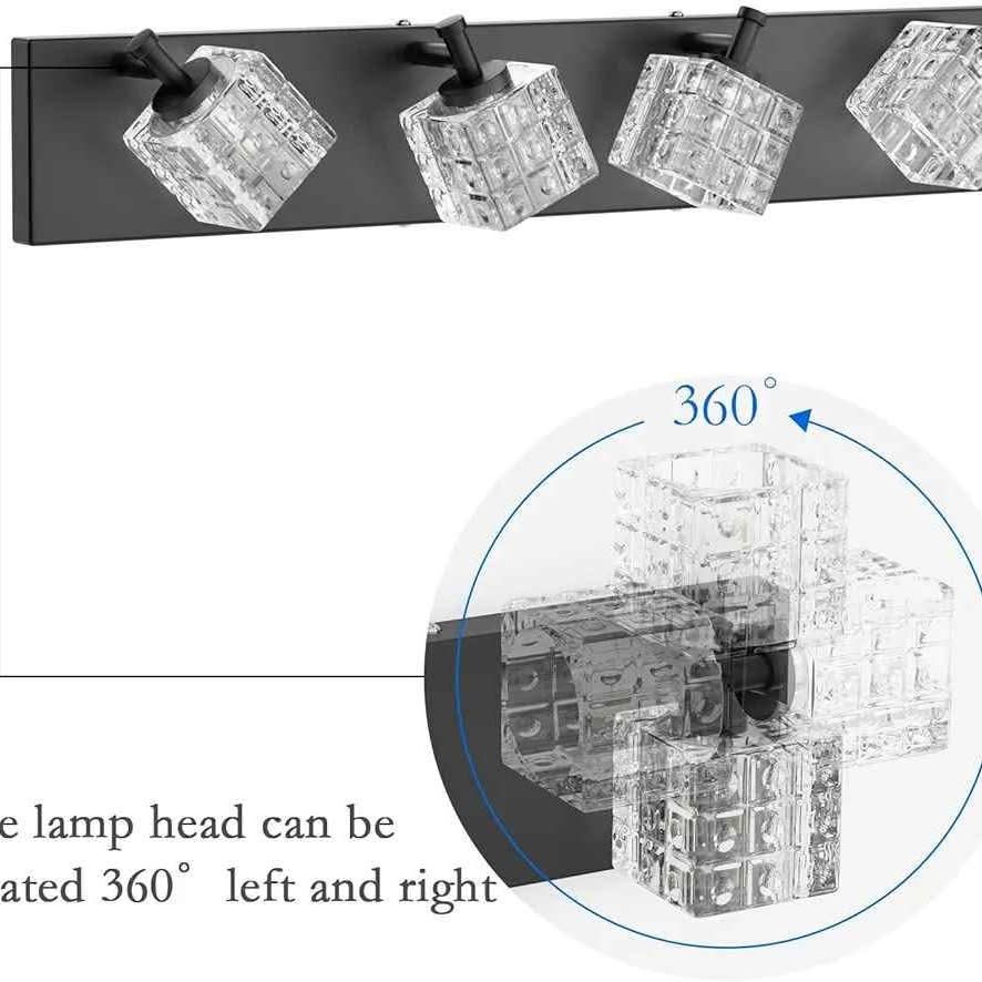 Ralbay Luces de tocador de cristal – 4 LED modernas luces de tocador de baño negro mate sobre espejo