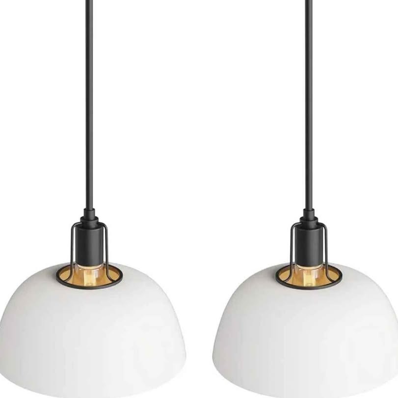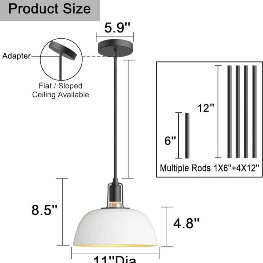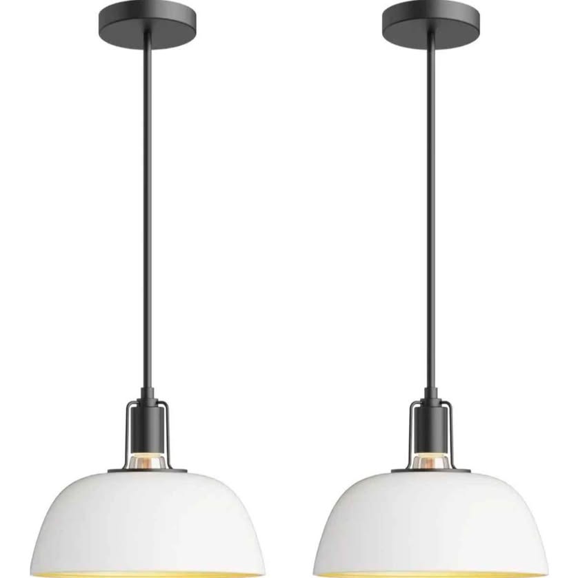 SEOL-Light - Lámpara colgante de poste con pantalla de cúpula de metal blanco de 11" con kit de colgante de varilla negra, E26, 2 paquetes