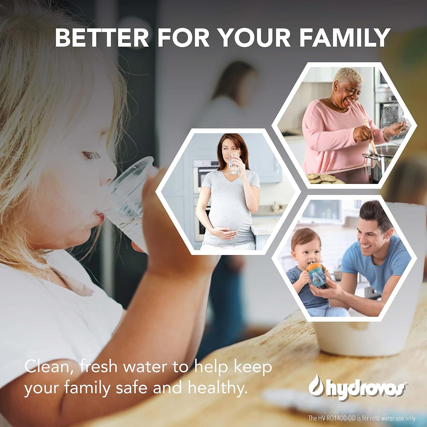 Sistema de filtración de agua para fregador de ósmosis inversa sin tanque, Sistema de ósmosis inversa sin tanque HV-RO1400-OD: 400 galones. Sistema de filtración de agua, no incluye grifo.