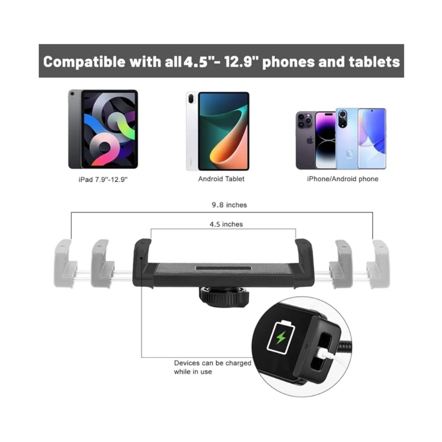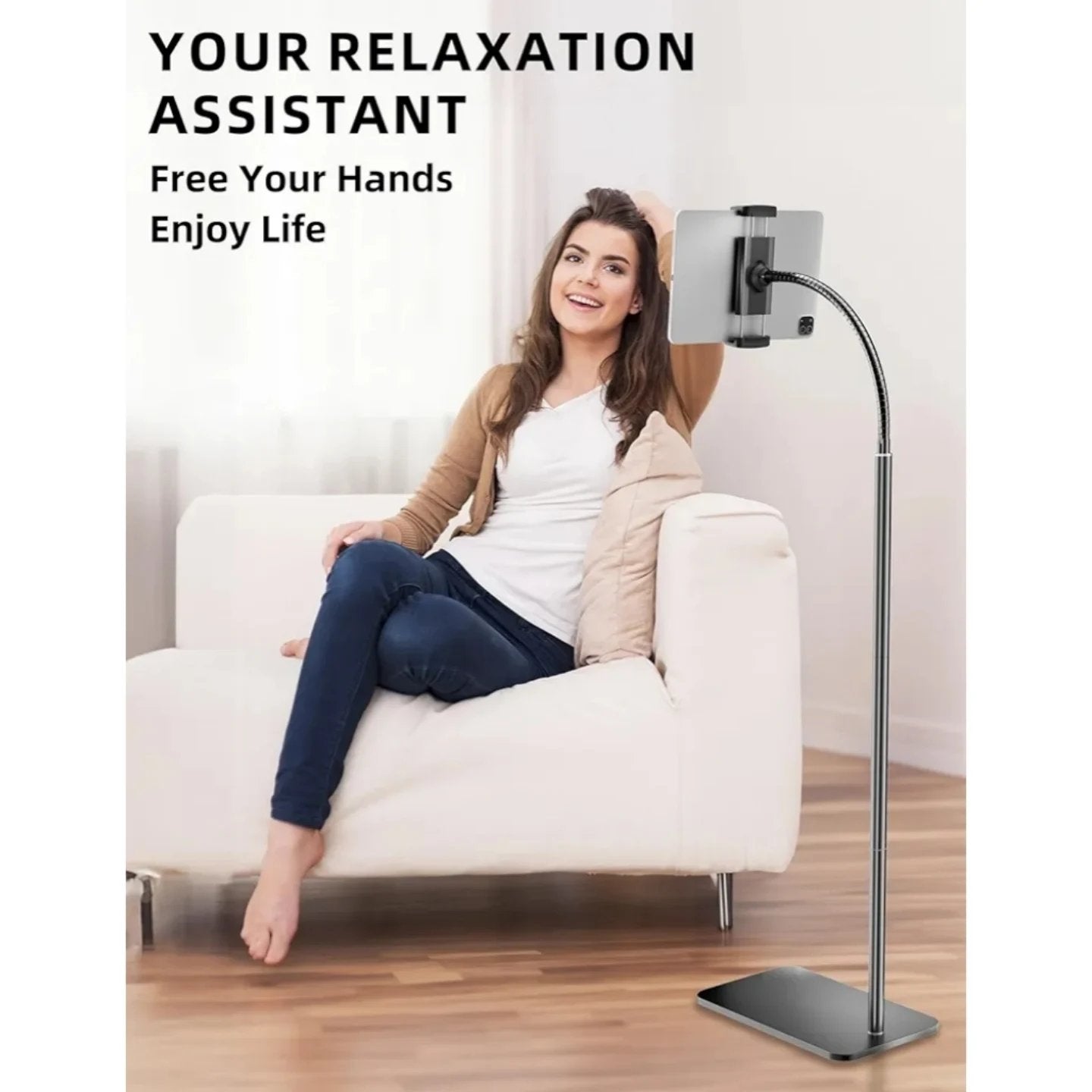 Soporte para iPad, soporte ajustable de metal para tablet con cuello de cisne flexible, compatible con iPad, Kindle y teléfonos celulares (4.7 a 13 pulgadas), ideal para uso manos libres