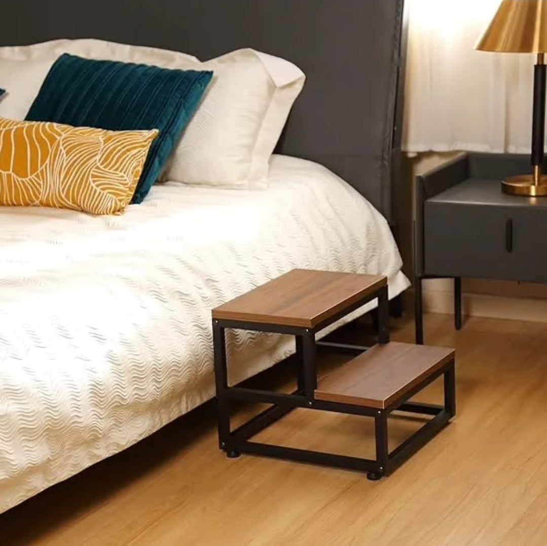 Taburete para adultos y niños, taburete de madera y metal, 2 escalones con protectores de esquina, escalones de cama para cama alta, ancianos y taburete para niños pequeños para dormitorio, baño