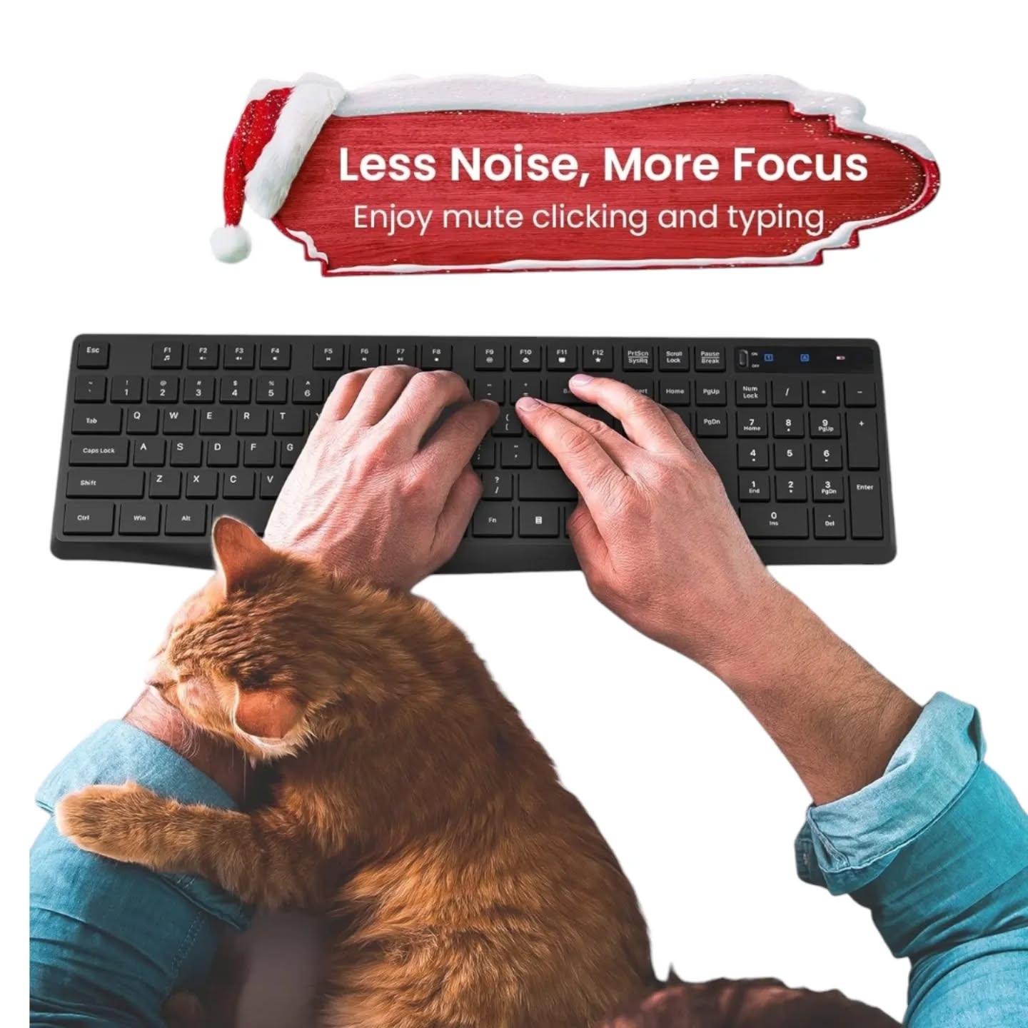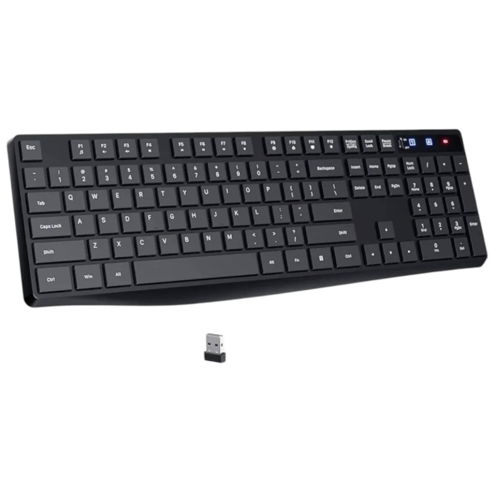 teclado inalámbrico de computadora de 2.4 GHz, interruptor de encendido/apagado independiente, indicador de números/mayúsculas/encendido, negro.