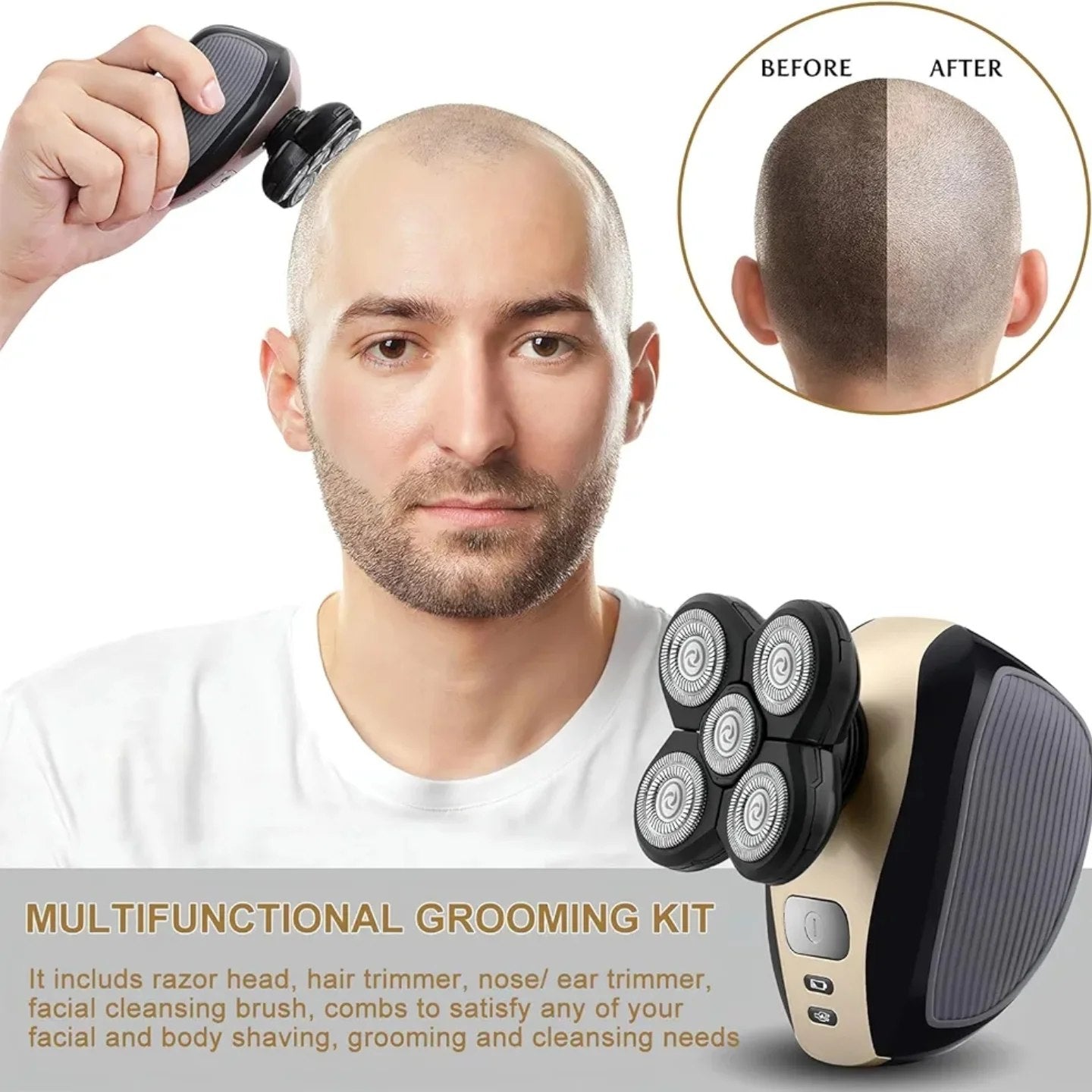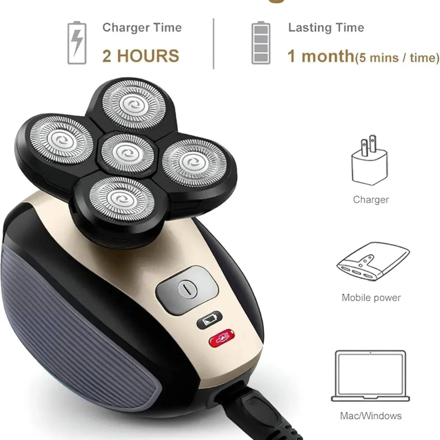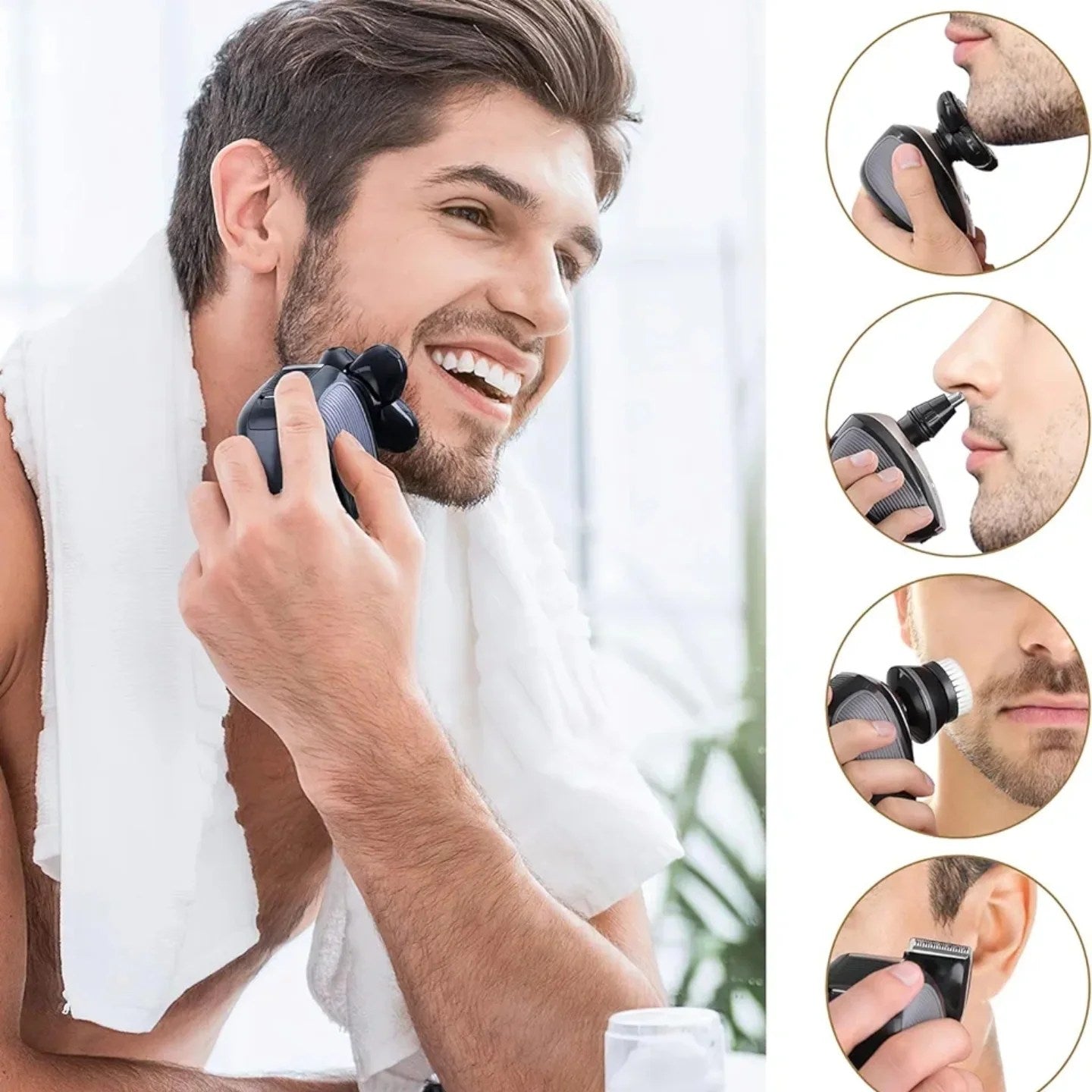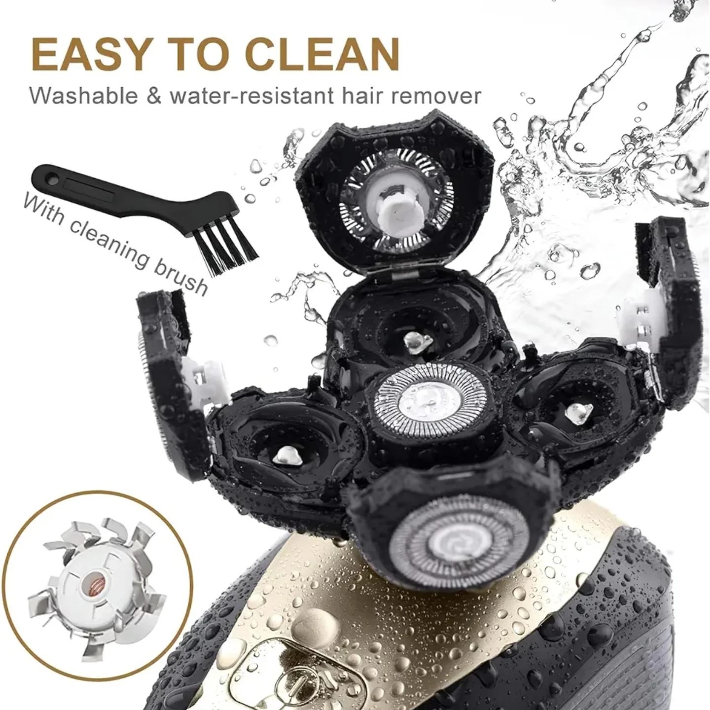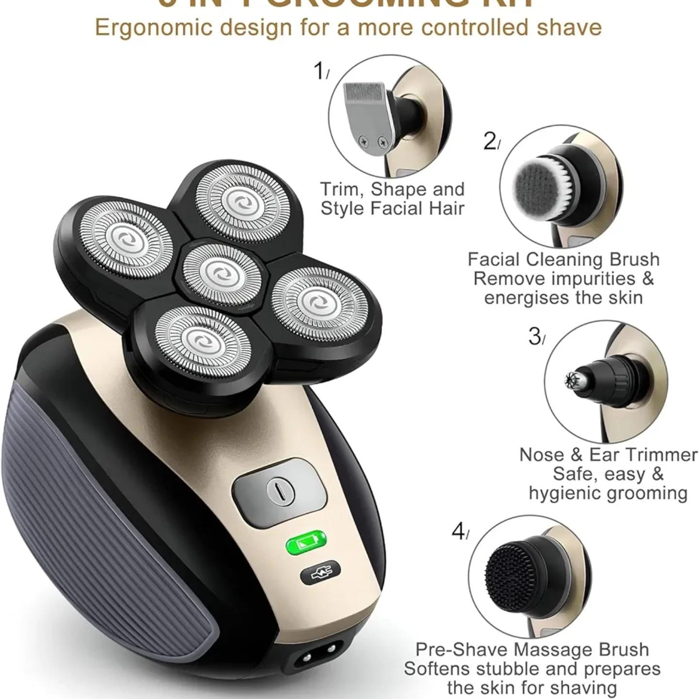 Telfun Maquinilla de afeitar eléctrica 5 en 1 para hombres, afeitadoras rotativas recargables en húmedo y seco, kit de aseo inalámbrico flotante 5D de 5 cabezales con barba, nariz, oreja, recortadora de vello corporal, cepillo de limpieza facial, regalos para hombres y papá