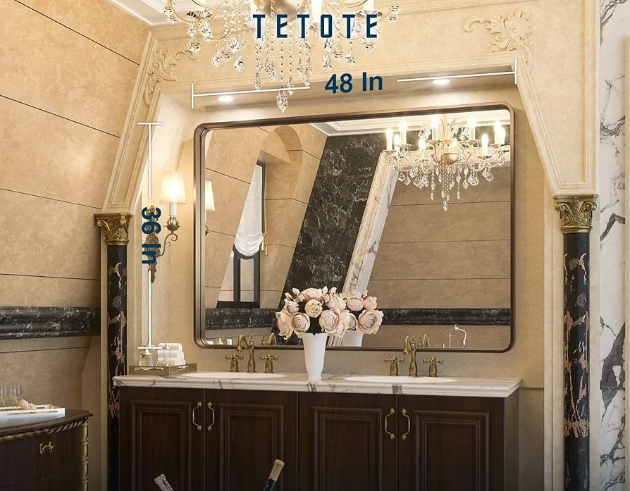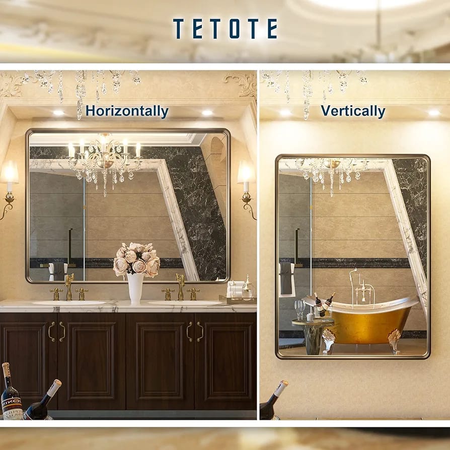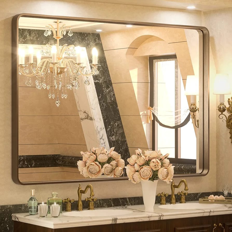 TETOTE Espejos de bronce de 48 x 36 pulgadas para baño, con marco de b...
