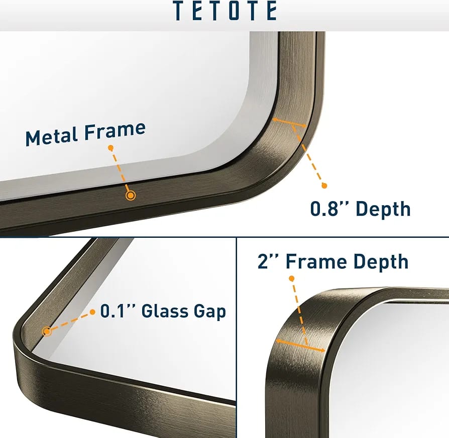 TETOTE Espejos de bronce de 48 x 36 pulgadas para baño, con marco de bronce aceitado, rectangular, moderno, para montar en la pared, espejo de bronce champán para tocador doble (horizontal/vertical).