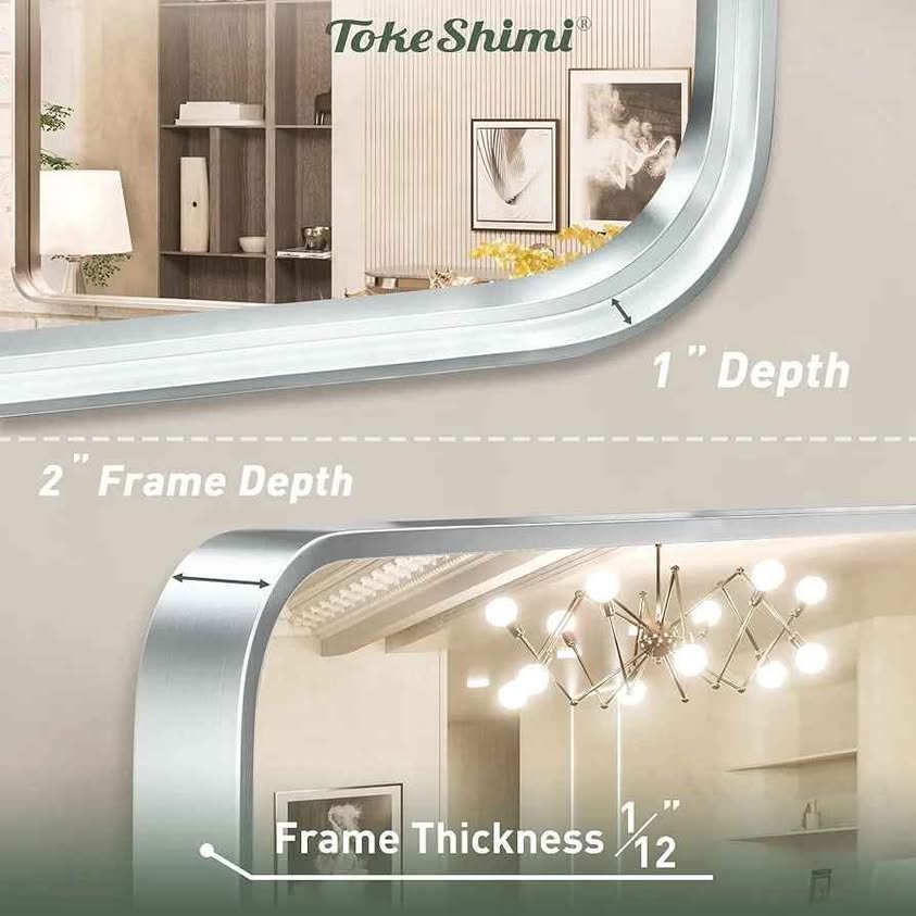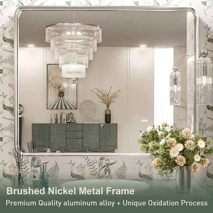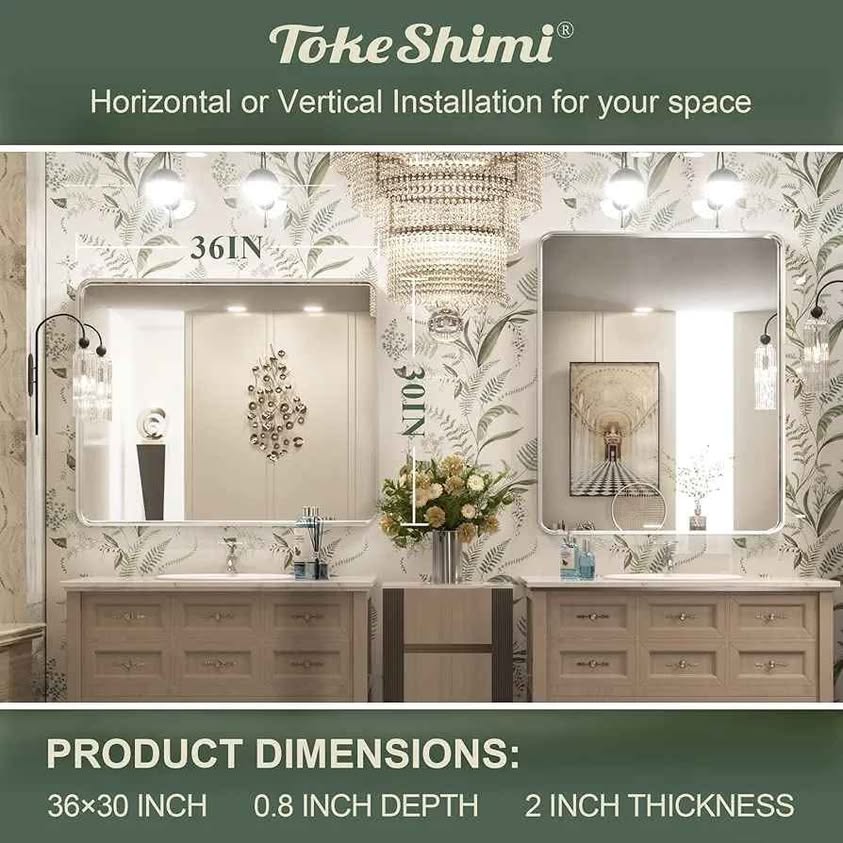 TokeShimi Espejo de baño plateado cepillado de 30 x 36 pulgadas para p...
