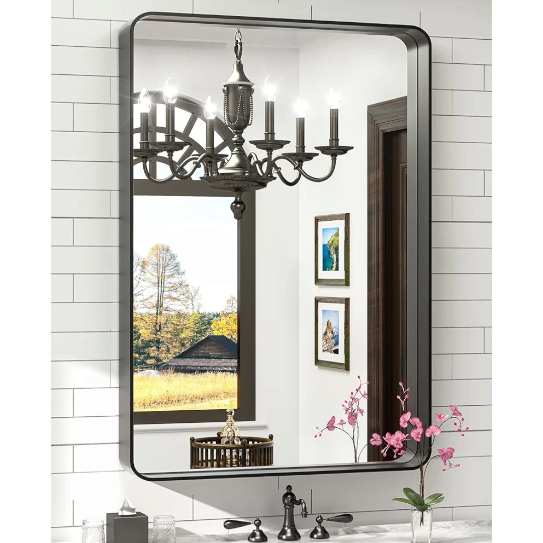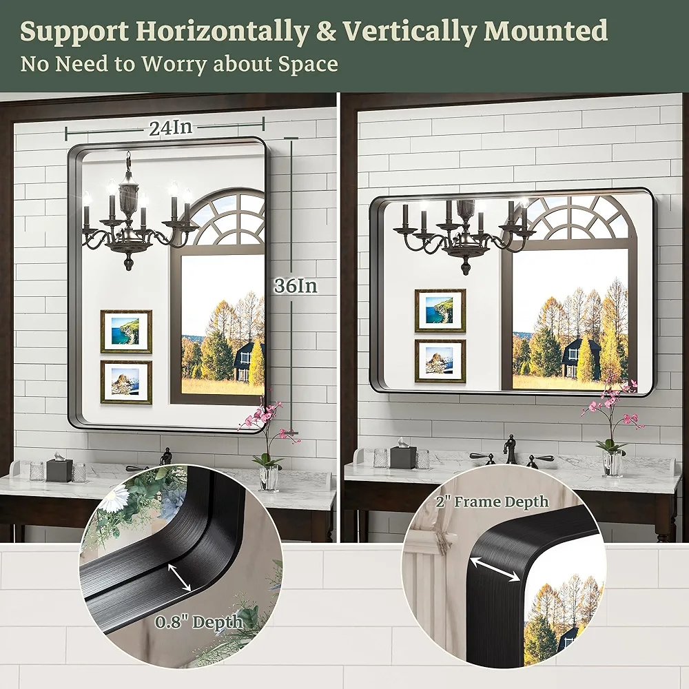 TokeShimi - Espejo rectangular de baño, con marco de metal negro, para montar en la pared, decoración del hogar, negro, 24 x 36 pulgadas (horizontal/vertical)