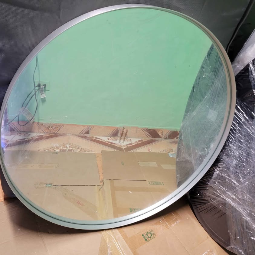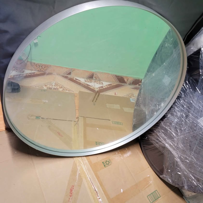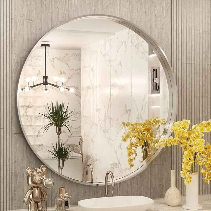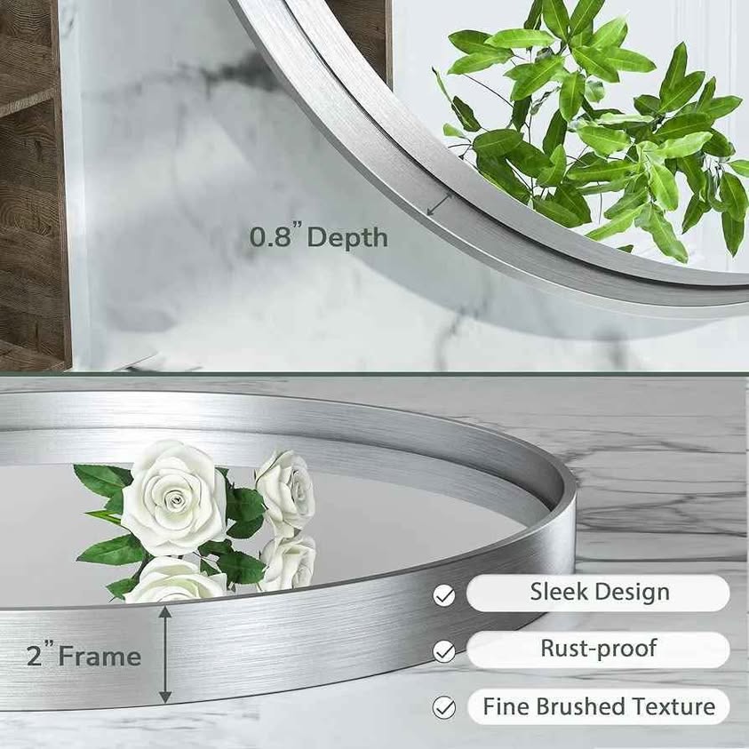 TokeShimi - Espejo redondo para pared de baño, con marco de metal de aleación de aluminio inoxidable, plateado cepillado, combina con un estilo minimalista, 30 pulgadas.