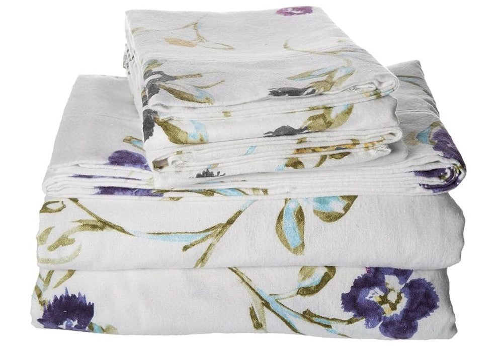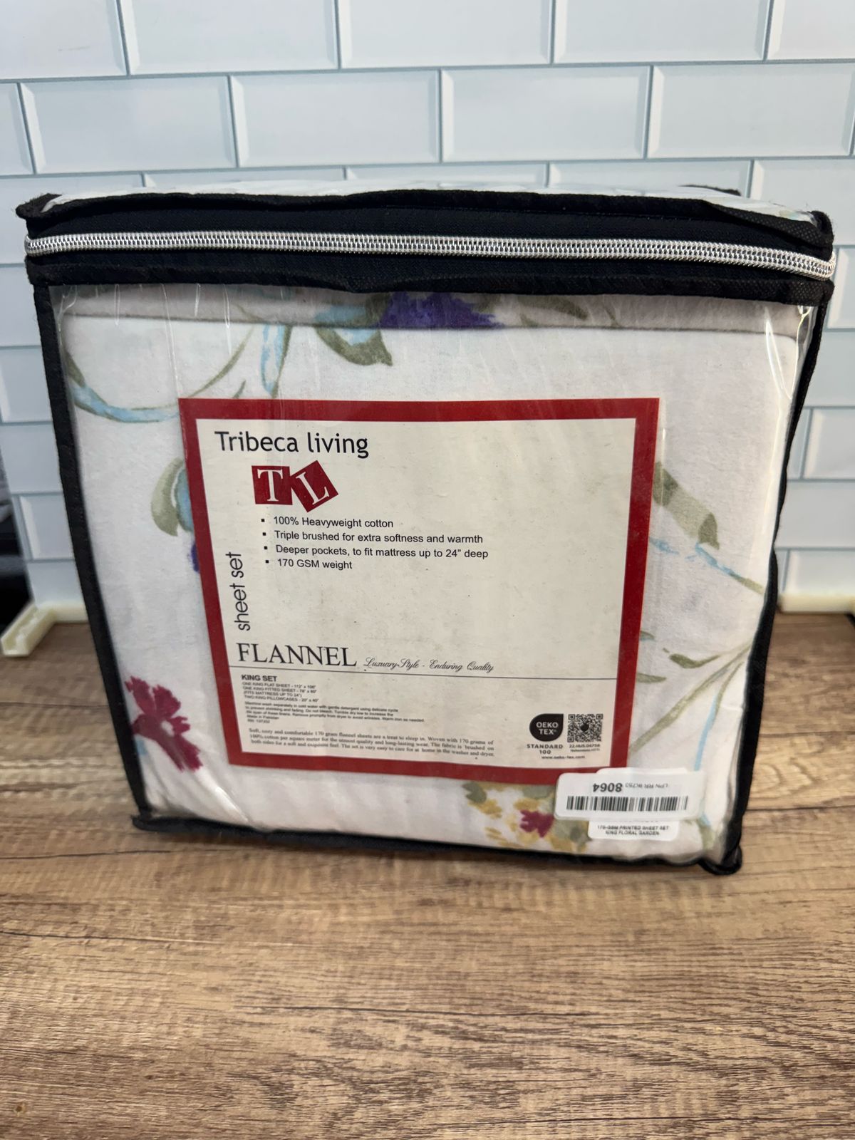 Tribeca Living Juego de sábanas de franela de bolsillo extra profundo con estampado floral King, 4 piezas, multicolor, FLFG170EDSSKI