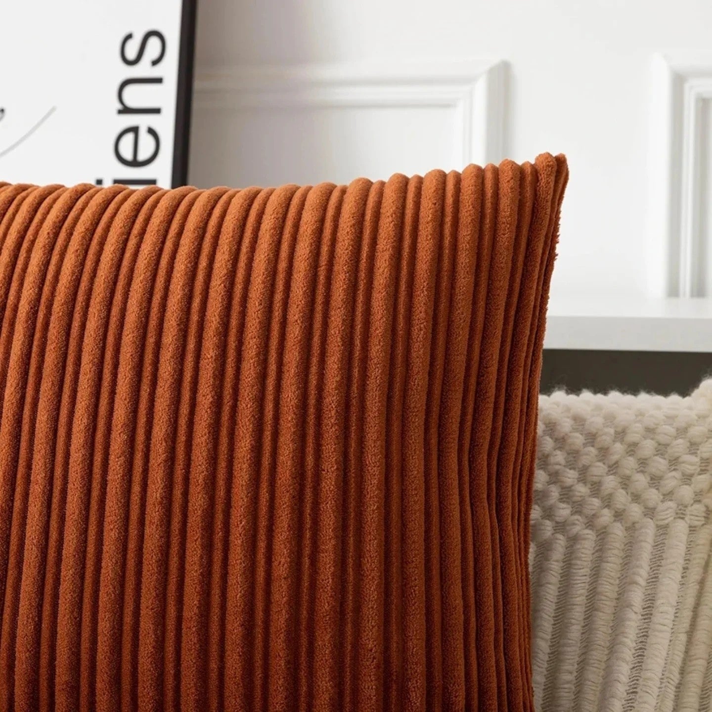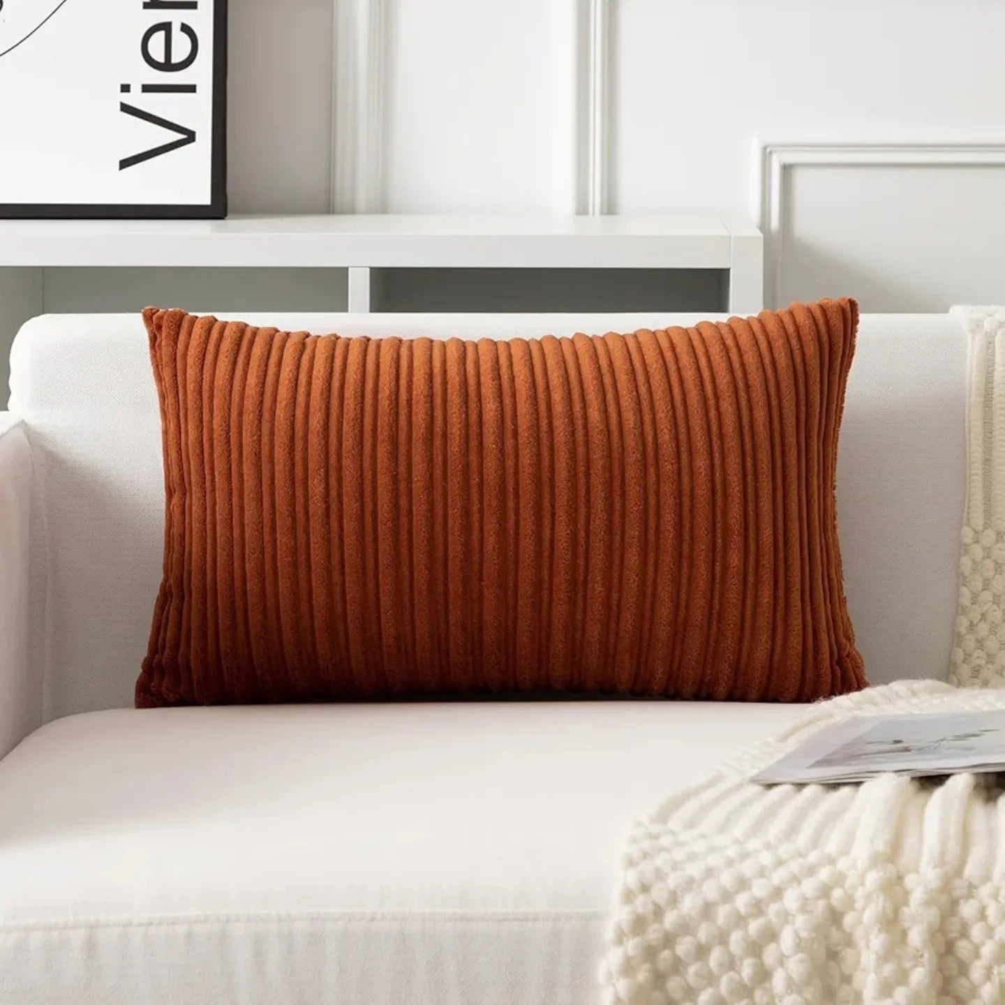 UGASA - Funda de almohada lumbar suave de terciopelo otoñal de 12 x 20 pulgadas, estilo bohemio rural de pana a rayas ambos lados, funda de cojín rectangular sólida para sofá, dormitorio