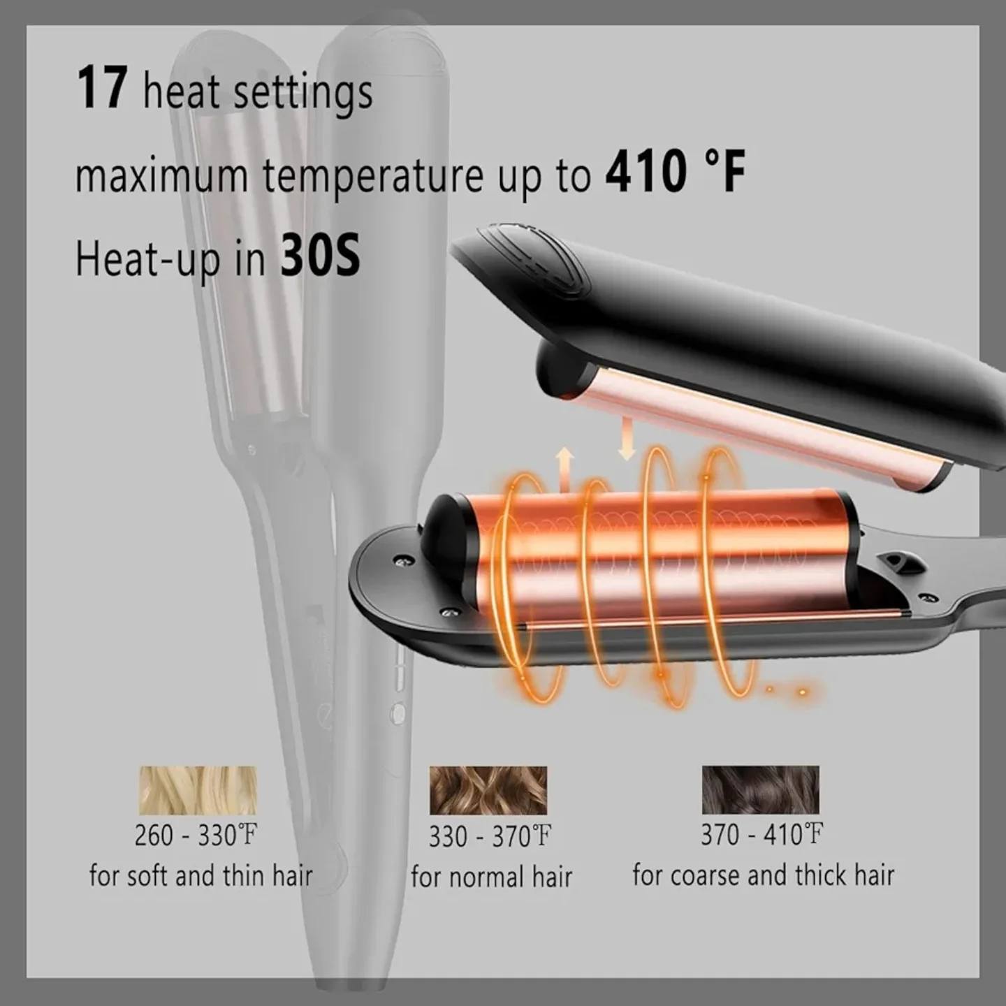 Varita rizadora de doble barril, crimpadora ondulada para cabello cort...