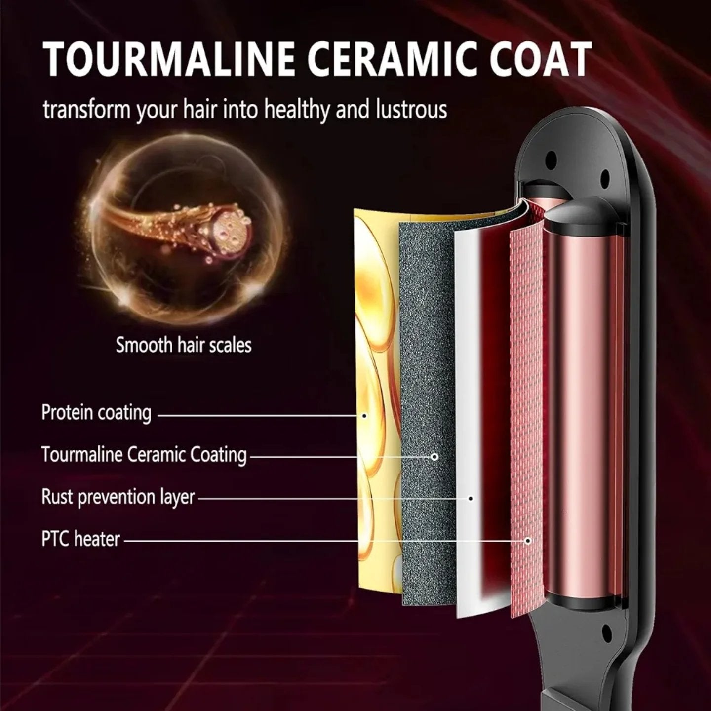 Varita rizadora de doble barril, crimpadora ondulada para cabello corto