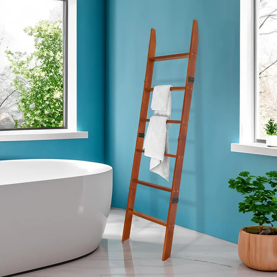 VASGOR Escalera de madera decorativa para manta de 68 pulgadas, soporte para manta de pared (marrón)