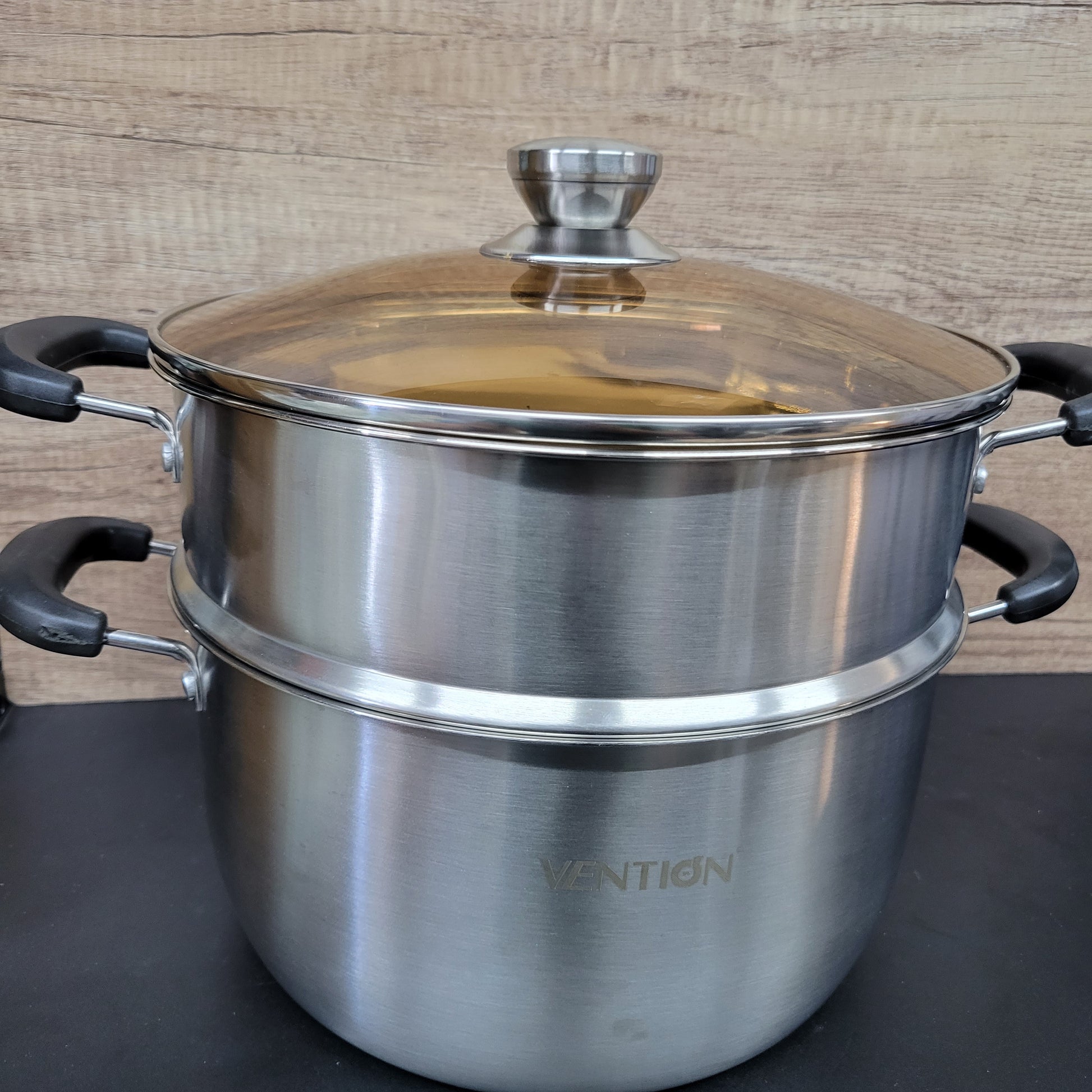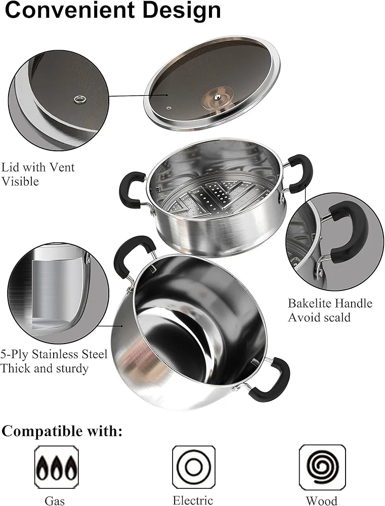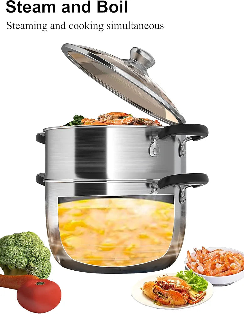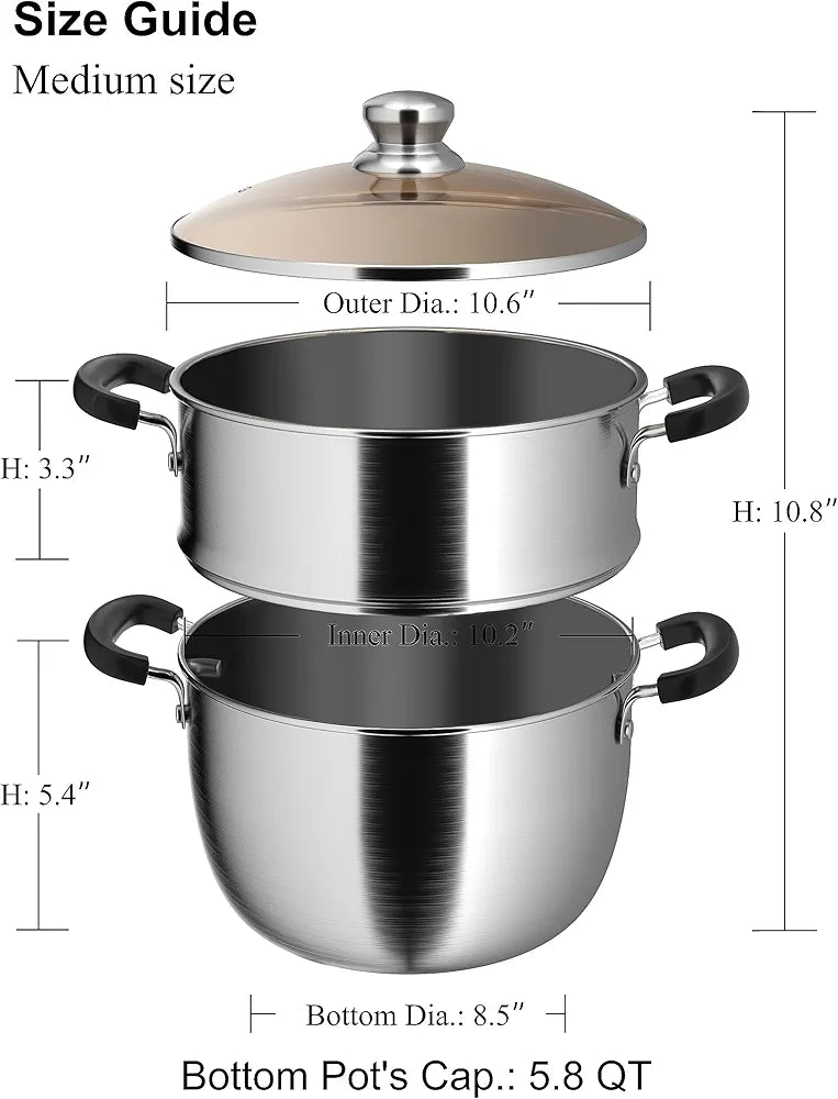 VENTION - Vaporera de 2 niveles para cocinar, vaporera de verduras de acero inoxidable de 26 cm, olla para tamales de doble capa de 5.5 LITROS, vaporera con canasta para cangrejo.