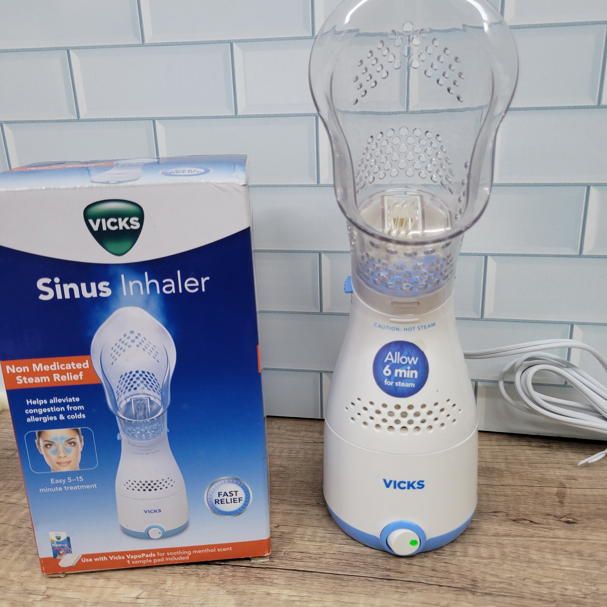 Vicks Inhalador de vapor personal para alivio sinusal, alergias, congestión, tos y resfriados, vapor facial, alivia los pasajes nasales y de garganta, uso con vapoPads (1 incluido), apto para FSA.