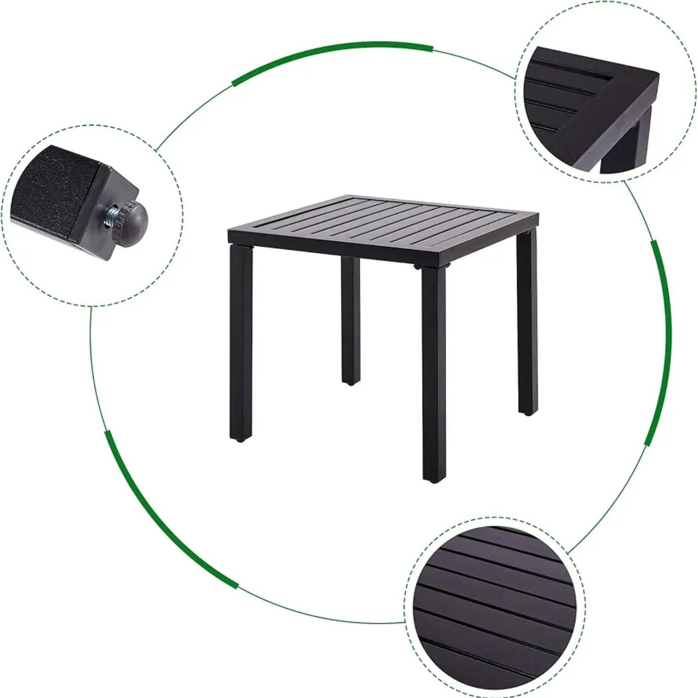 VICLLAX Mesa auxiliar lateral para exteriores, mesa de centro cuadrada de metal, para patio, color negro