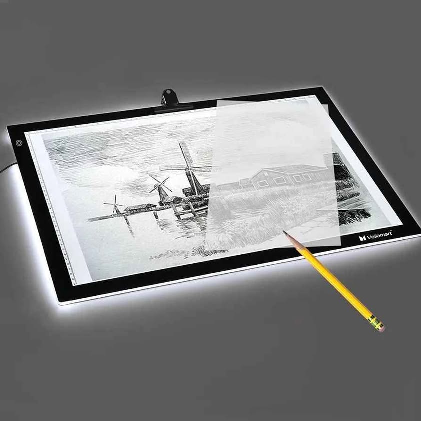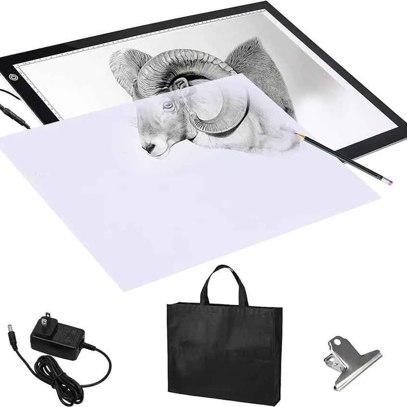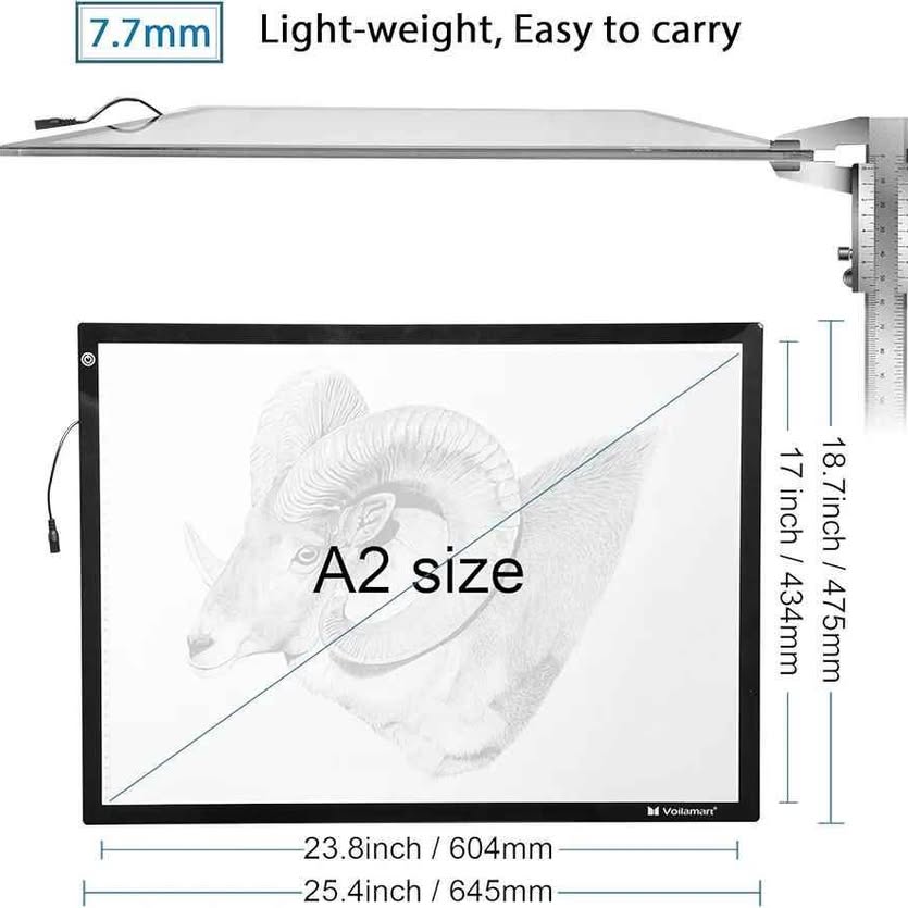 Voilamart Caja de luz LED A2, panel de luz de iluminación, brillo regulable con clip de papel, 2 cables, para dibujo, manualidades, plantilla, boceto 47x64 cm