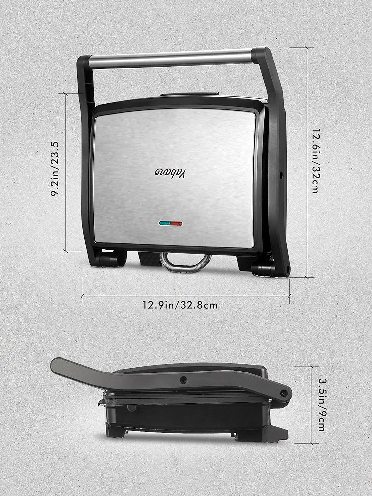 Yabano Panini - Parrilla de prensa, sandwichera gourmet, parrilla eléctrica para interiores con placa de cocción antiadherente y bandeja de goteo extraíble, fácil de limpiar, acero inoxidable.