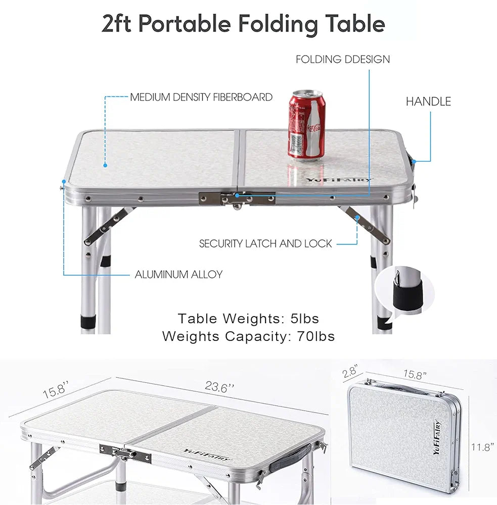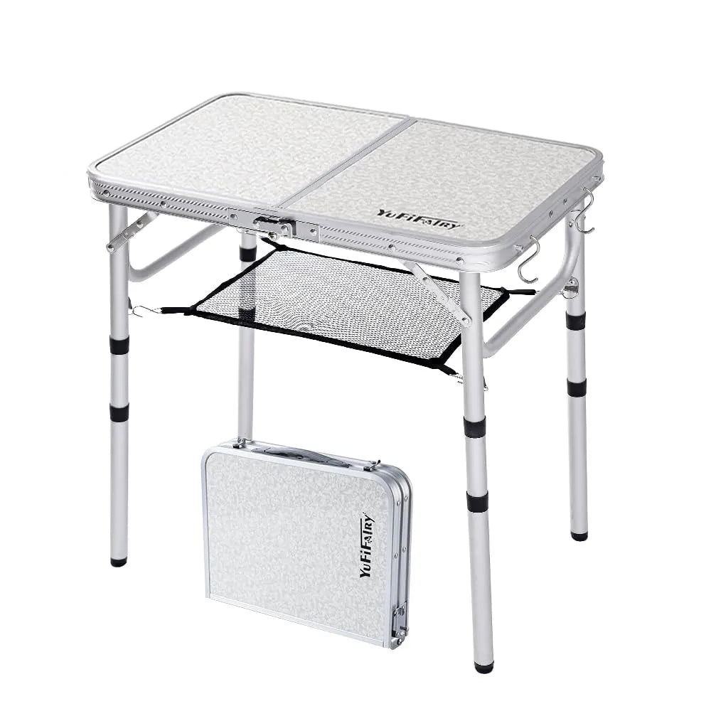 YUFIFAIRY Mesa plegable pequeña con capa de malla, 3 alturas ajustables, mesa plegable portátil ligera de aluminio con patas extensibles, mesa de camping para RV, picnic e interior 23.6 x 15.8 pulgadas