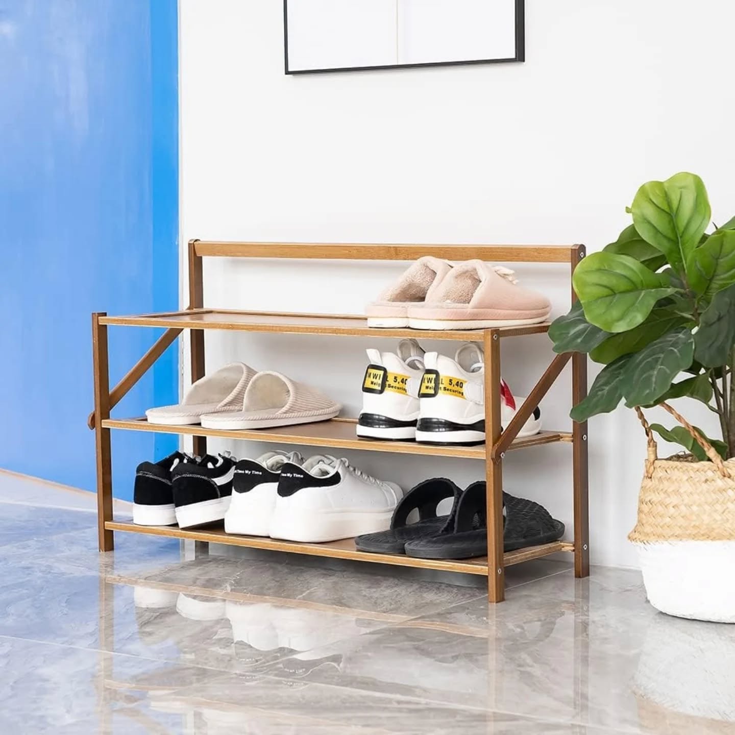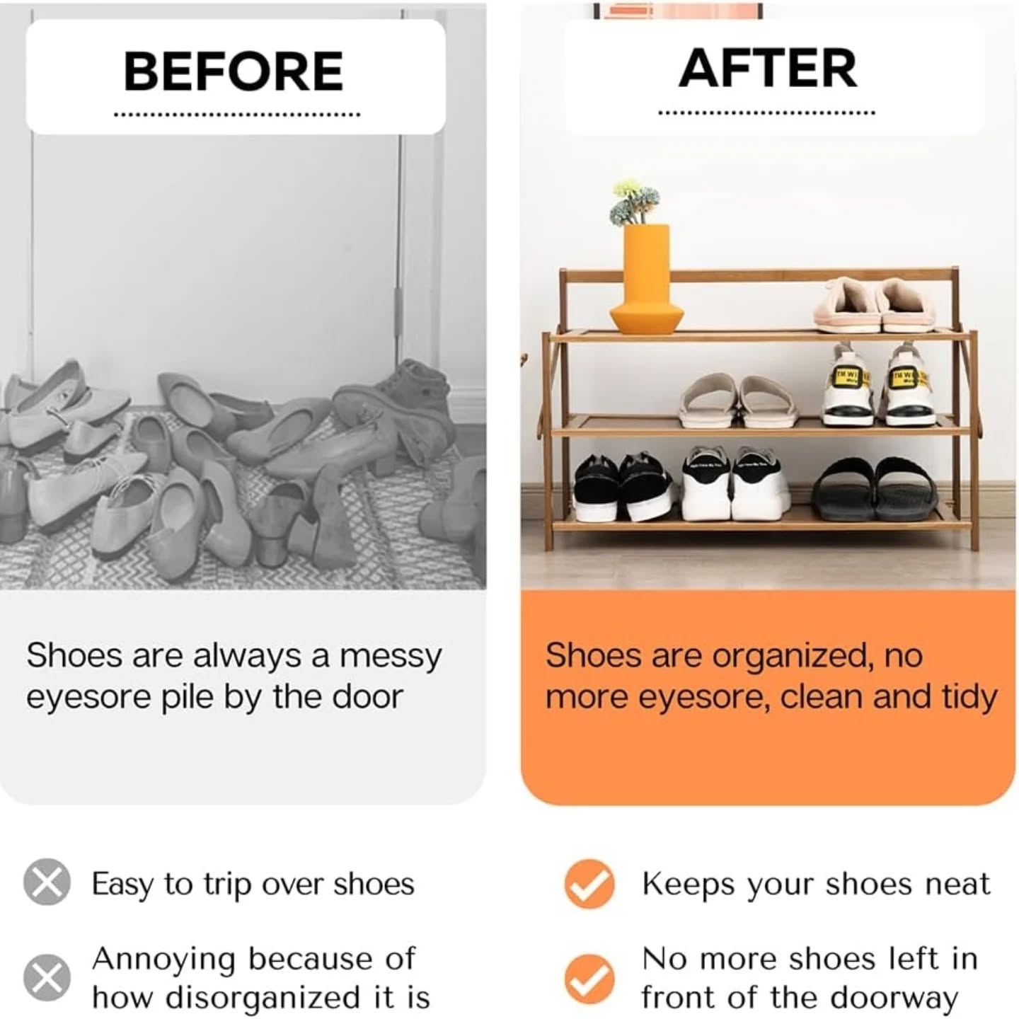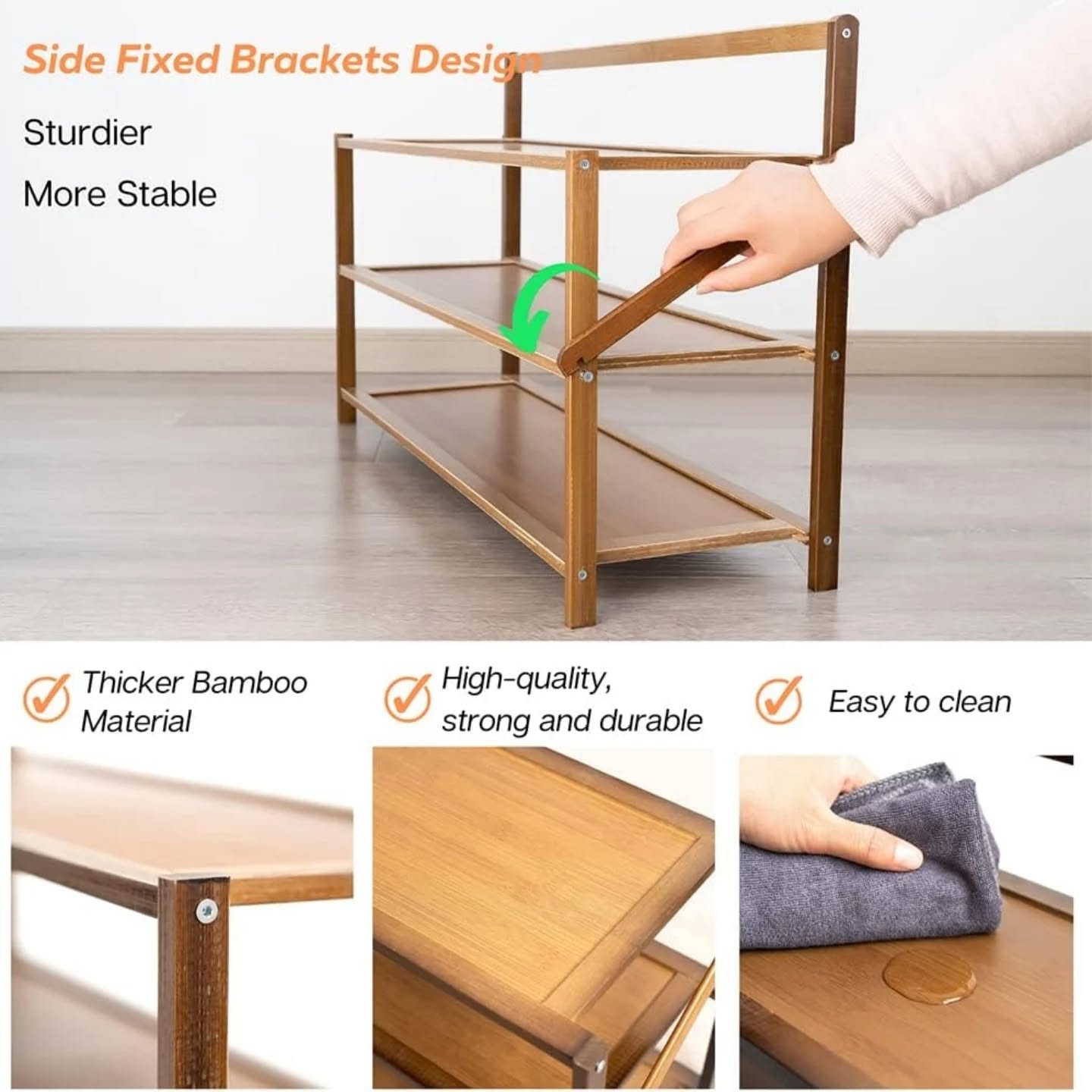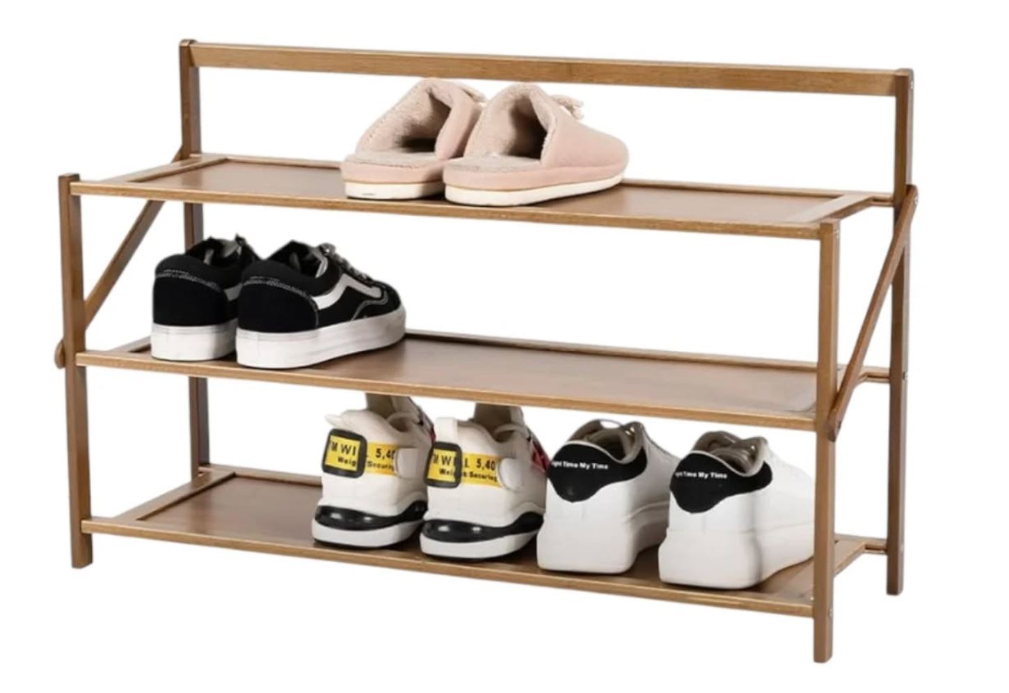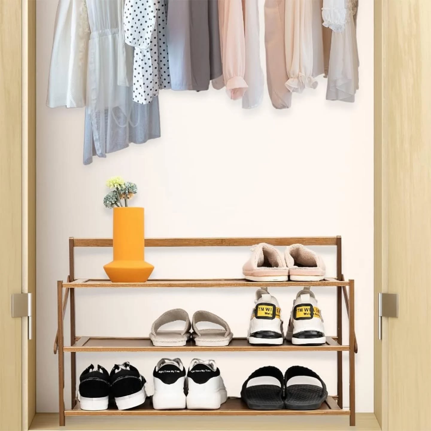 Zapatero de bambú pequeño de 3 niveles para armario y entrada