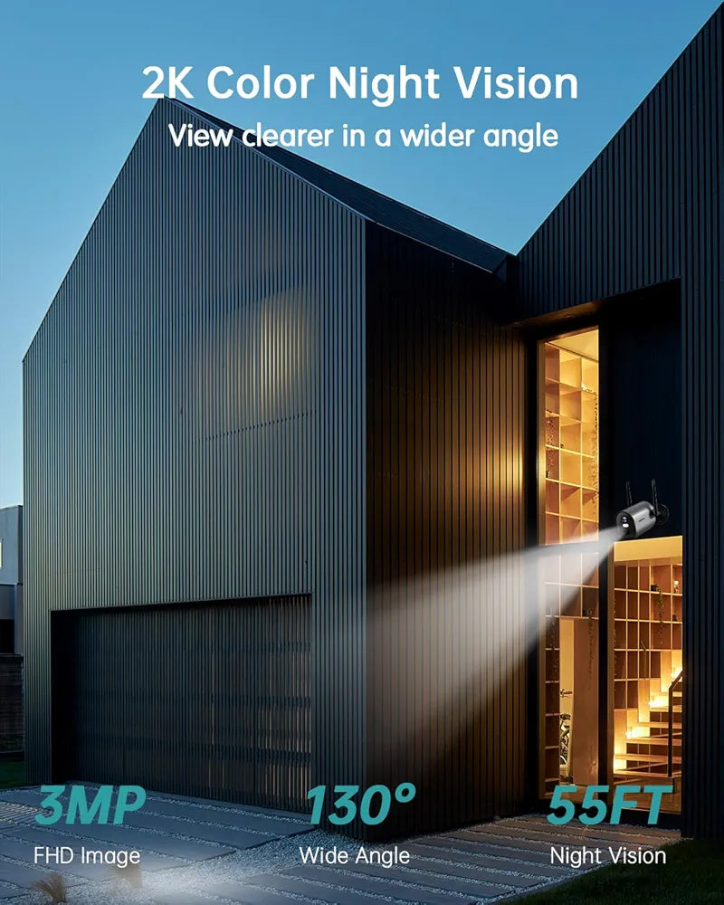 ZUMIMALL - Cámara de vigilancia WiFi inalámbrica para exteriores 2K, recargable para seguridad del hogar, visión nocturna a color de 3 MP, audio de 2 vías, impermeable, sirena y foco, alerta de movimiento, nube/SD, 2 unidades